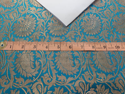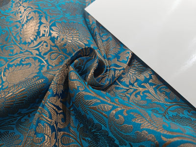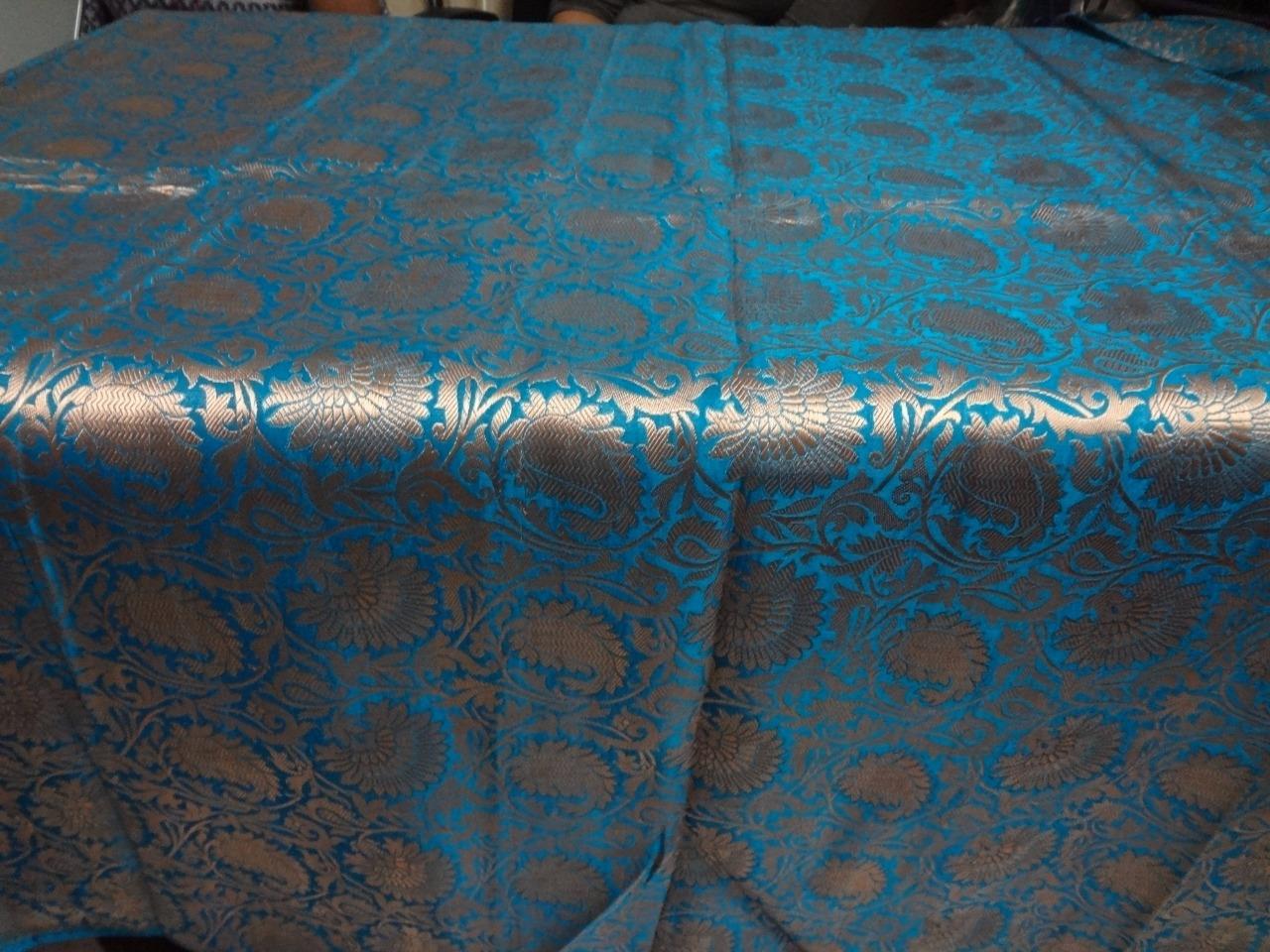 SILK BROCADE FABRIC BLUE X ANTIQUE GOLD COLOR BRO76[3]