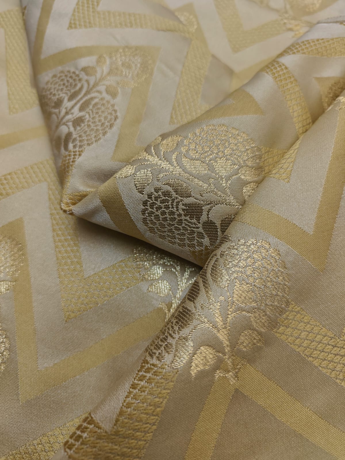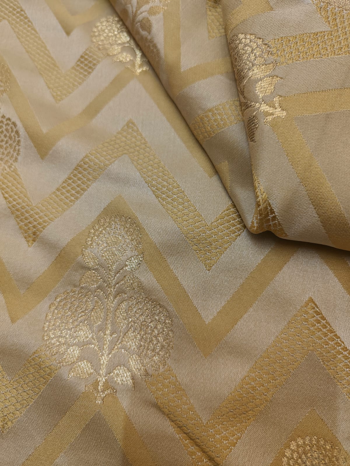 As luxurious as it seems, the art of brocade has transcended from the age old era of opulence and royalty. Conceptualized as a naksha (design) on paper first, the nakshabandha (designer) translates the design on Banarasi silk weaves, using fine gauze or gold or silver threads with immaculate precision into patterns that range from artistic elaboration to minimalistic intricacy. Romance with royalty in your outfit daily.