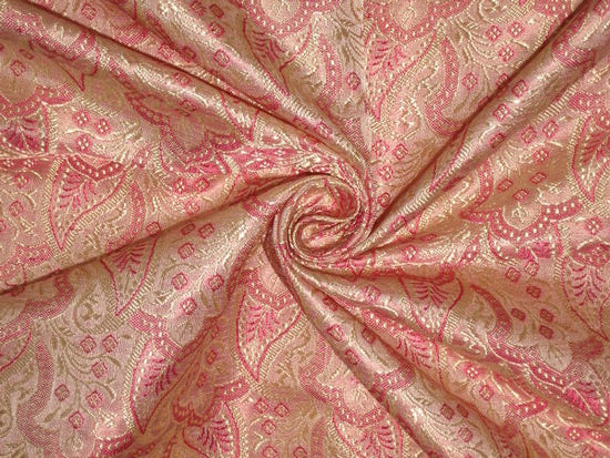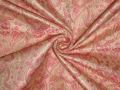 SILK BROCADE FABRIC Gold,Pink & Baby Pink color 44" wide BRO160[5]