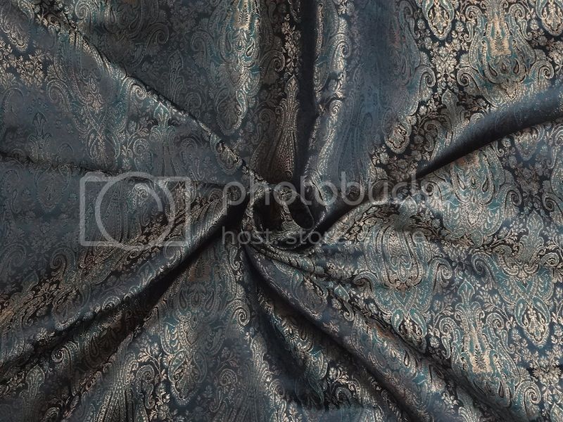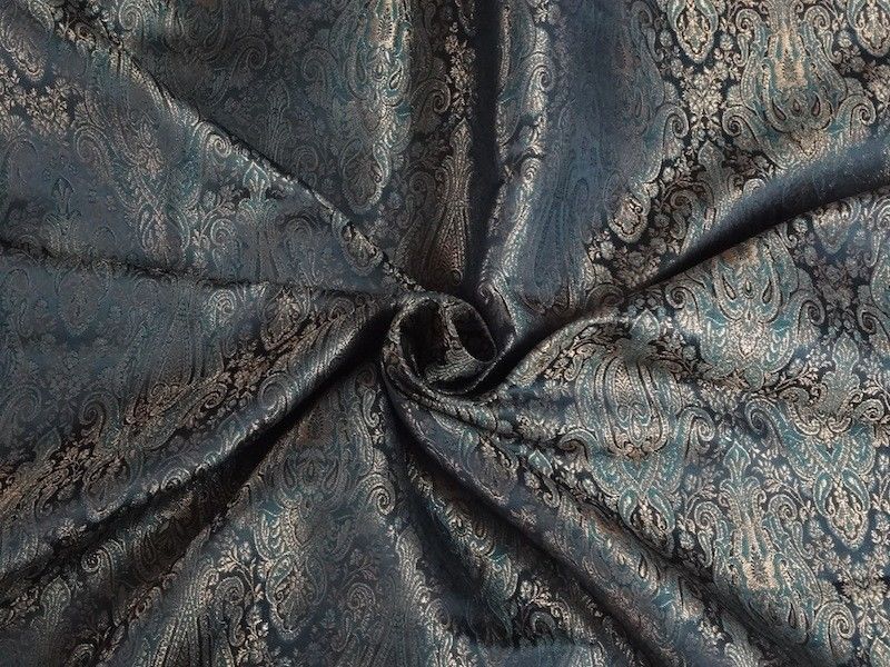 SILK BROCADE FABRIC Green,Black & Metallic Gold 44"