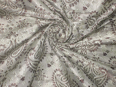 SILK BROCADE FABRIC Grey,Dark Brown & Gold 44"