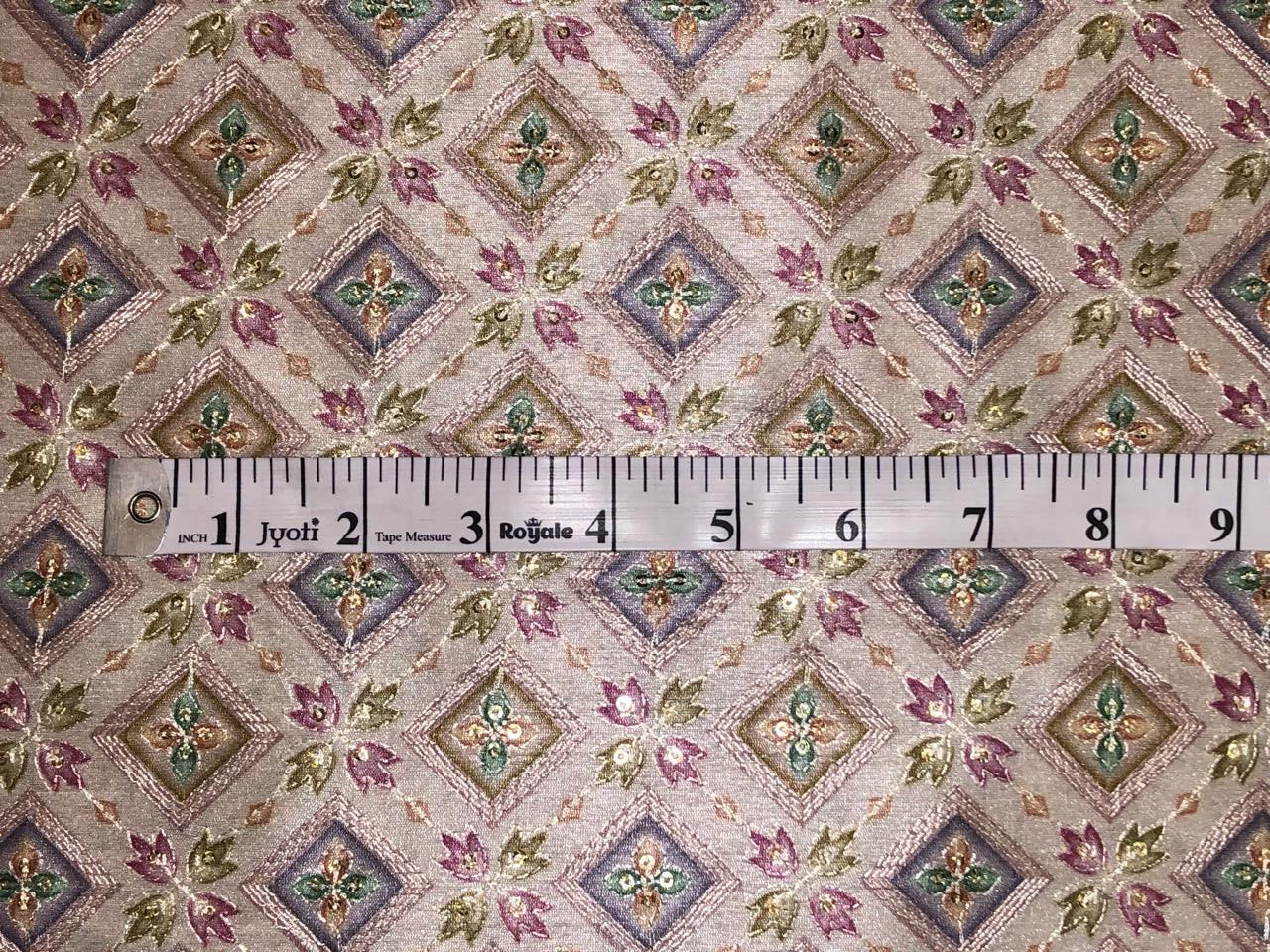 Silk Brocade fabric ivory with diamond motif floral jacquard and subtle sequins and embroidery BRO1069[1]