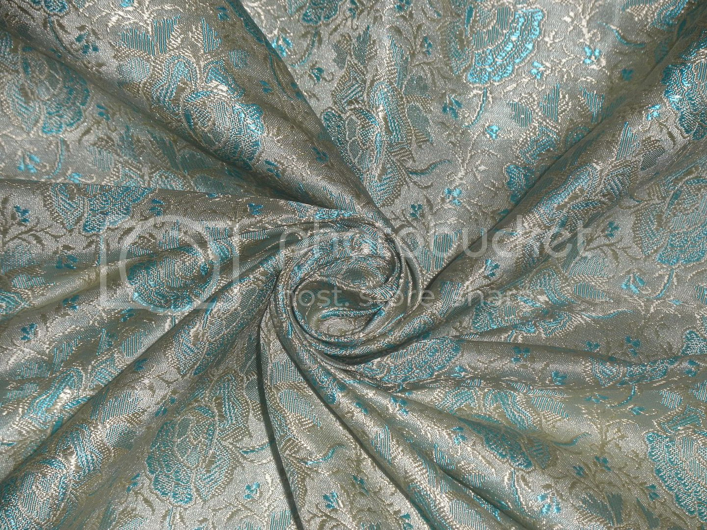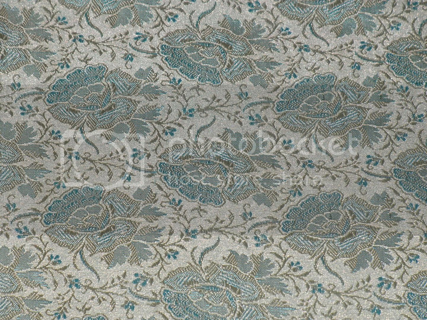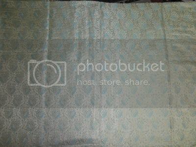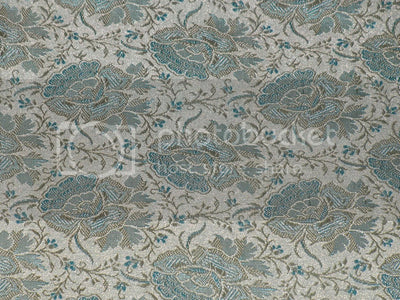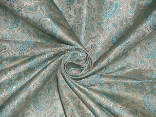 Silk Brocade fabric Light Gold & Aqua Blue color
