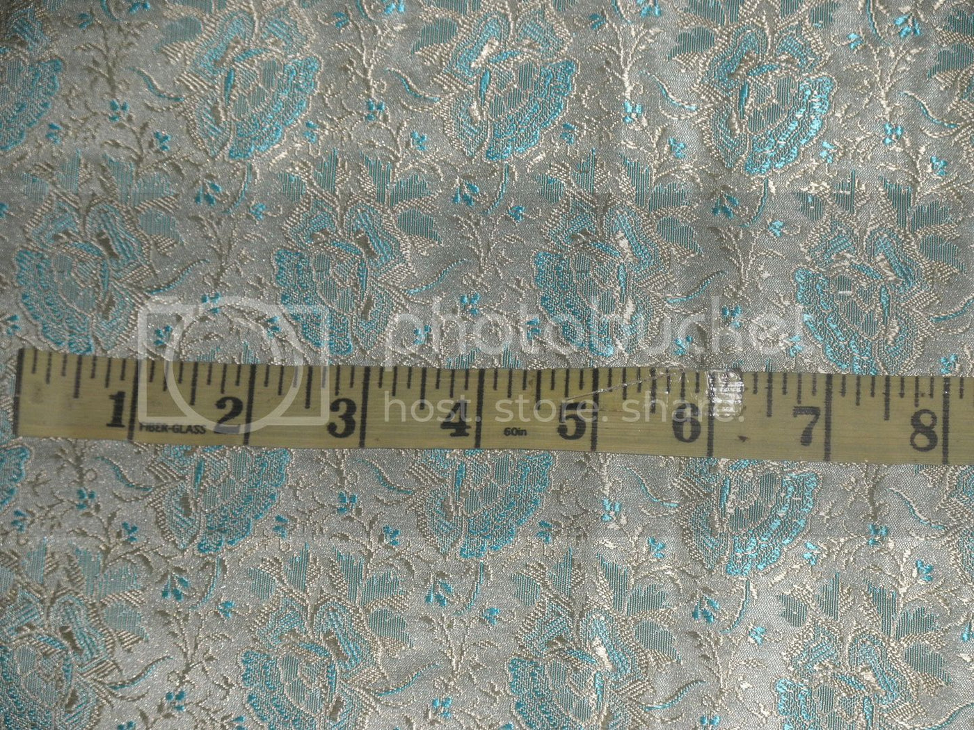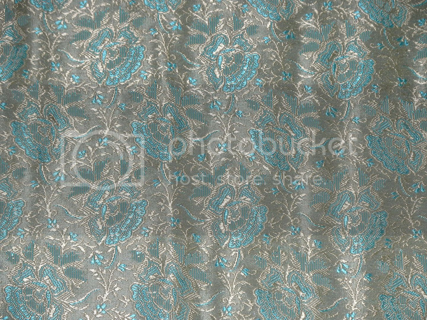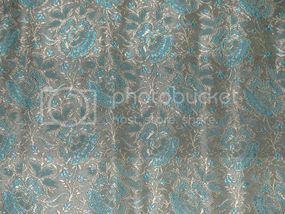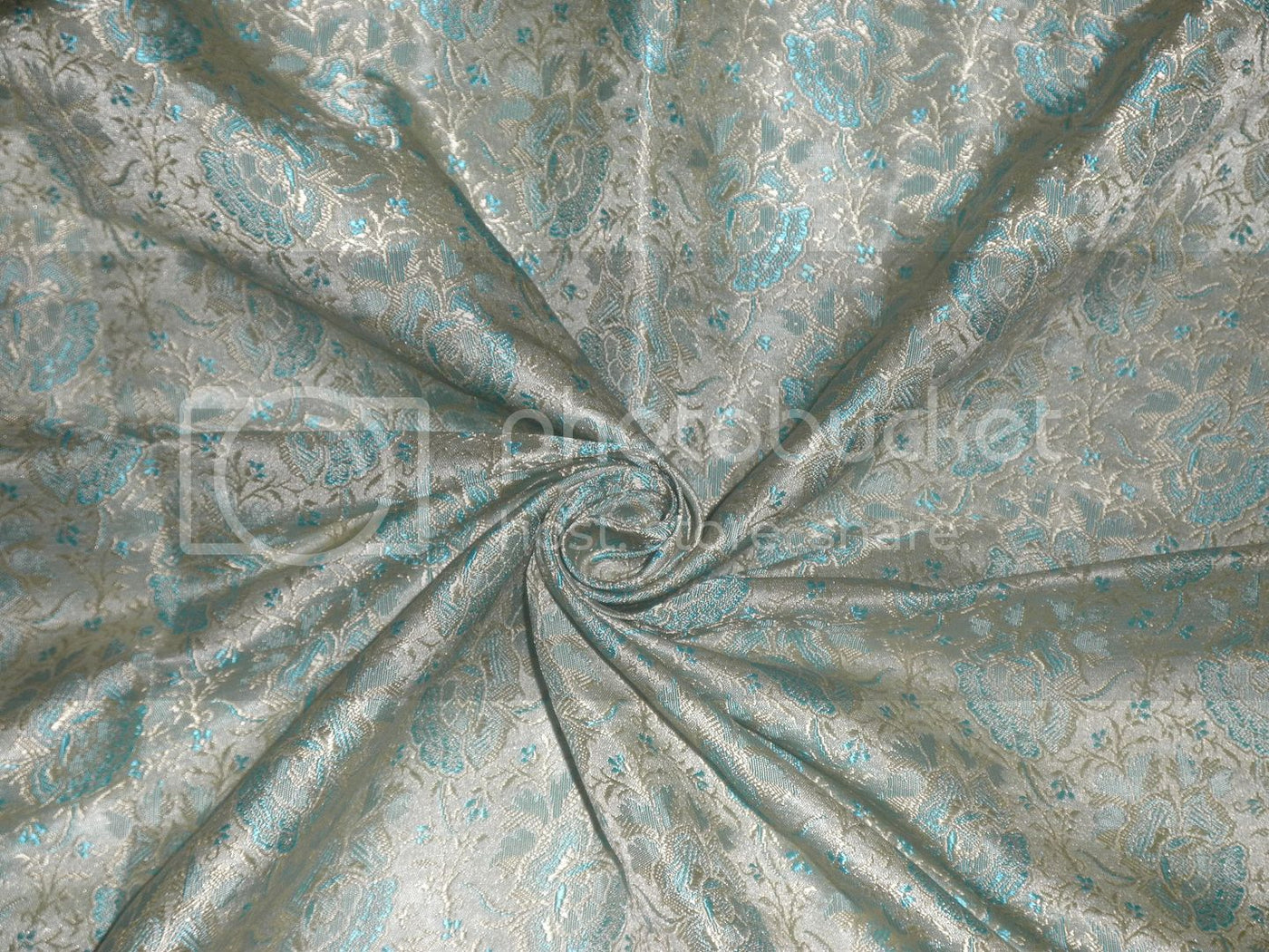 Silk Brocade fabric Light Gold & Aqua Blue color