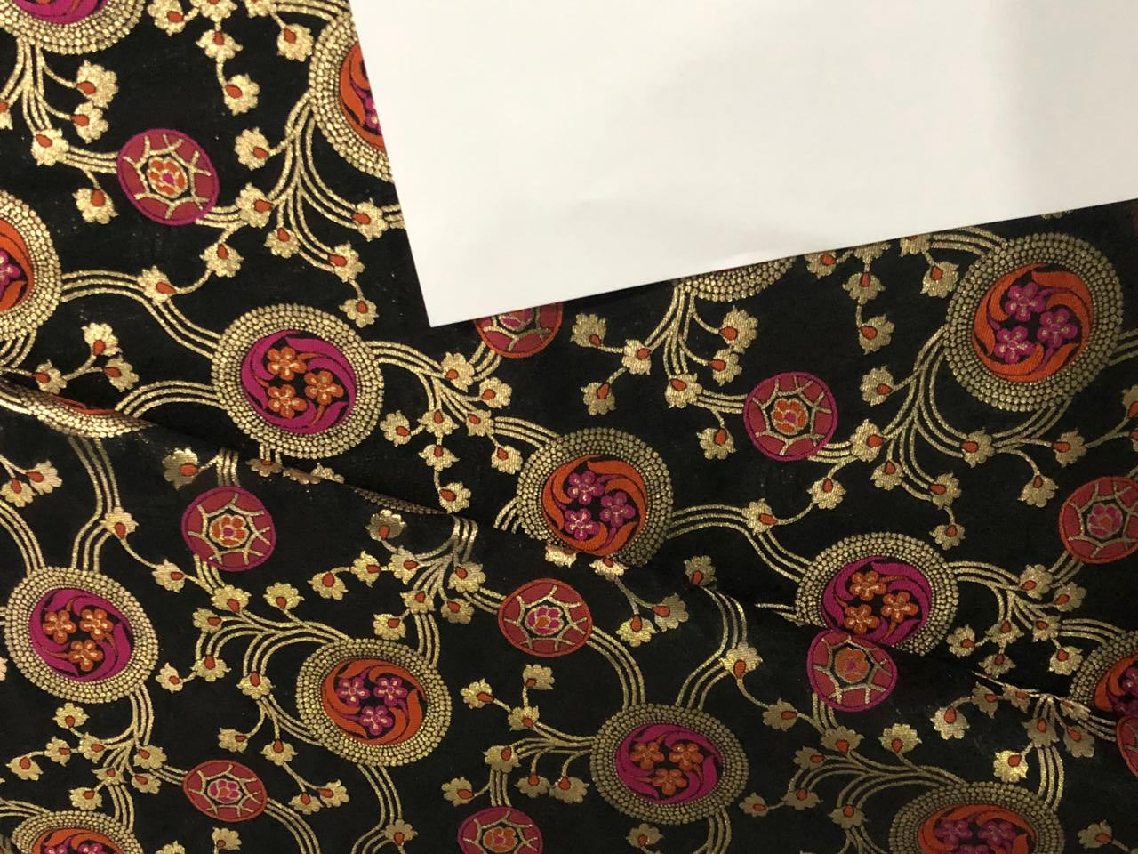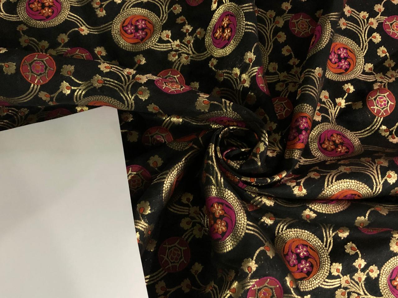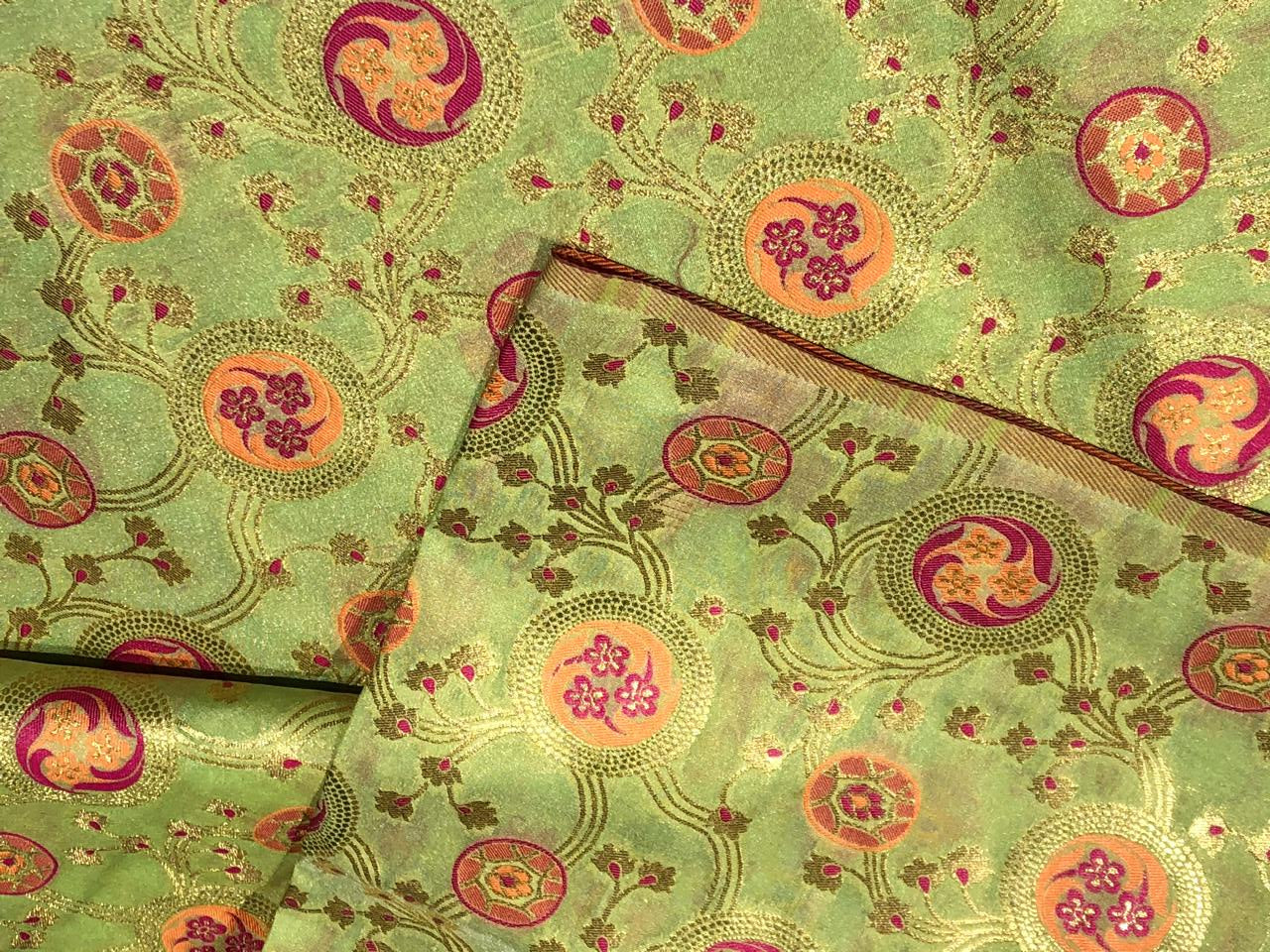Silk Brocade Fabric metallic gold jacquard 44" wide BRO953 available in 2 colors BLACK AND PASTEL GREEN