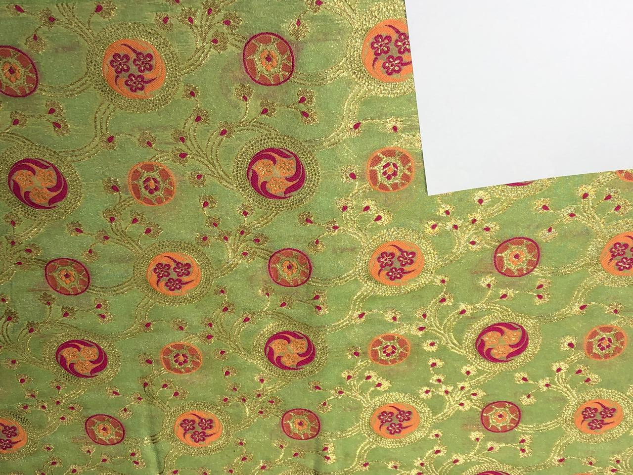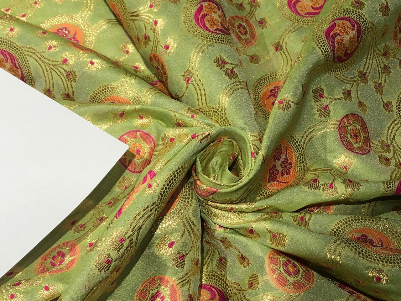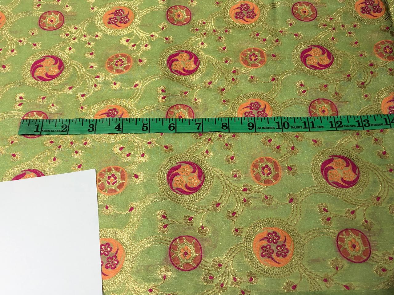 Silk Brocade Fabric metallic gold jacquard  44" wide BRO953 available in 2 colors BLACK AND PASTEL GREEN