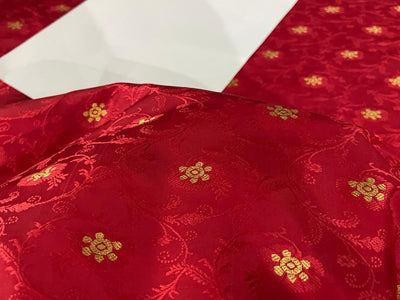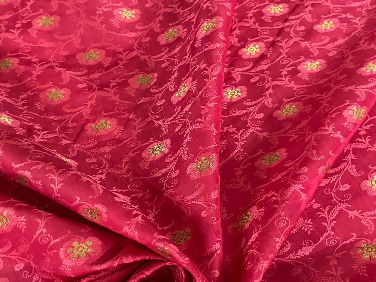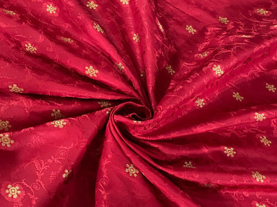 Silk Brocade Fabric metallic gold jacquard  44"wide available in 2 colors red and watermelon red BRO953[3/4]