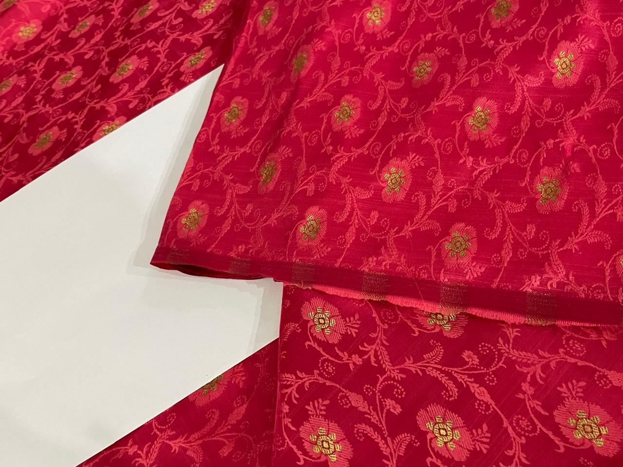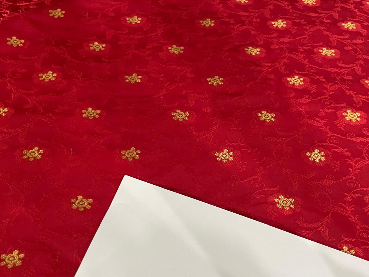 Silk Brocade Fabric metallic gold jacquard 44"wide available in 2 colors red and watermelon red BRO953[3/4]
