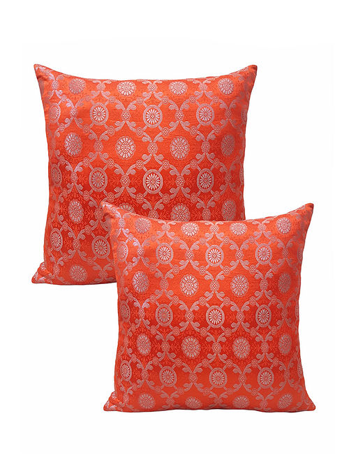 SILK BROCADE FABRIC orange 44"BRO14[5]