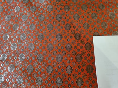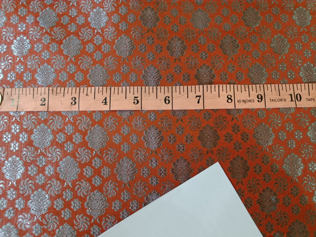100% Silk Brocade fabric Orange & Silvery Blue 44" wide BRO84[3]