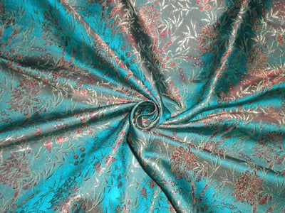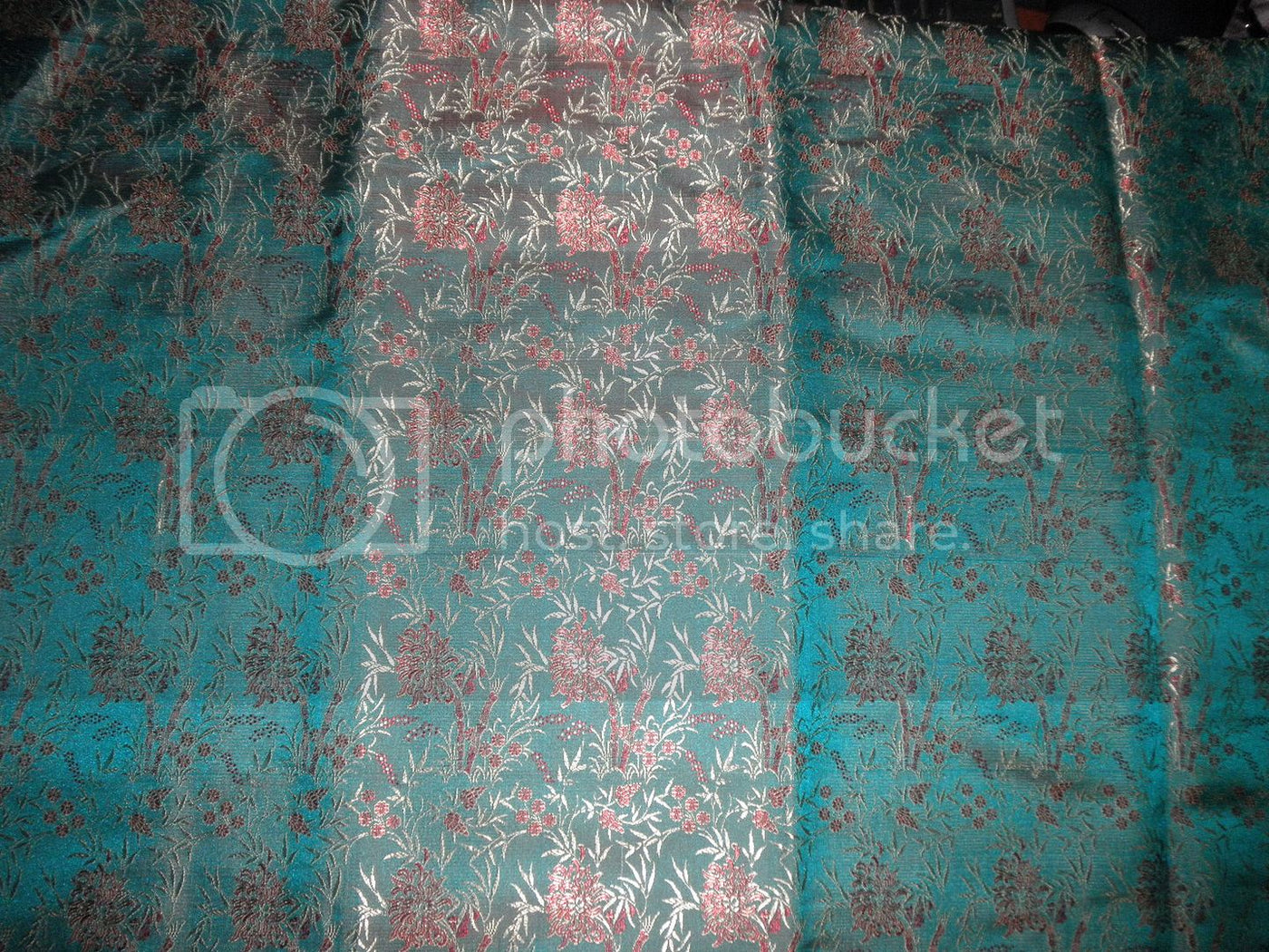 SILK BROCADE FABRIC Sea Blue/Green,Gold & Red 44" wide BRO230[2]