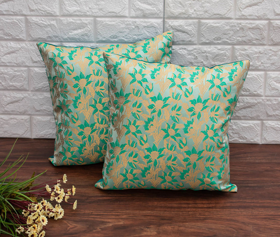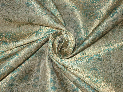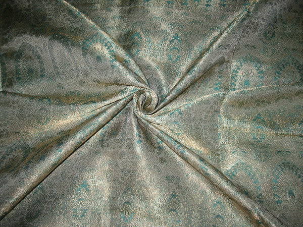 Silk Brocade fabric Sea Green & Metallic Gold 44" wide BRO113[6]