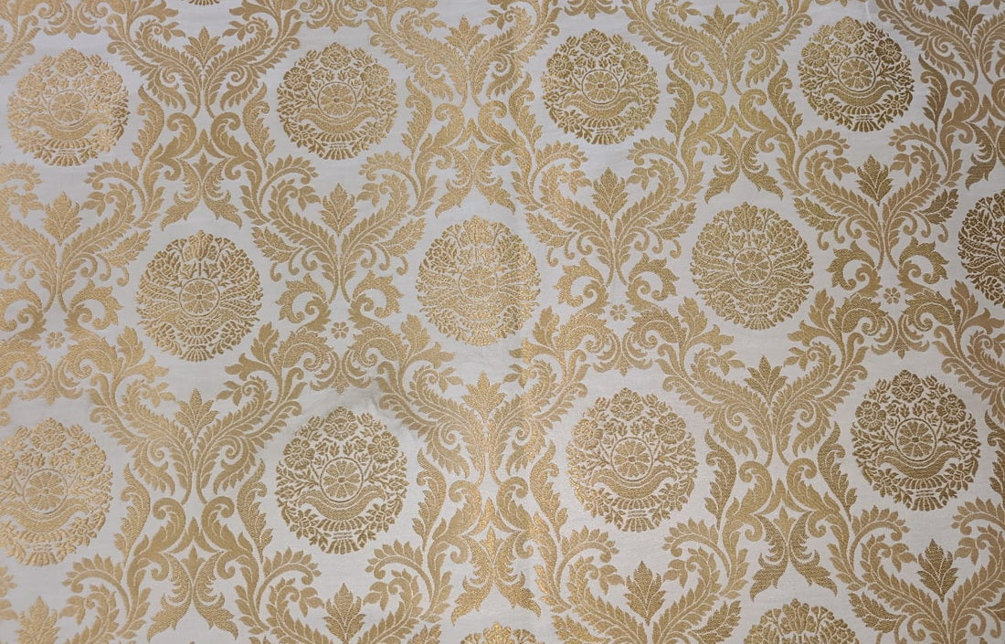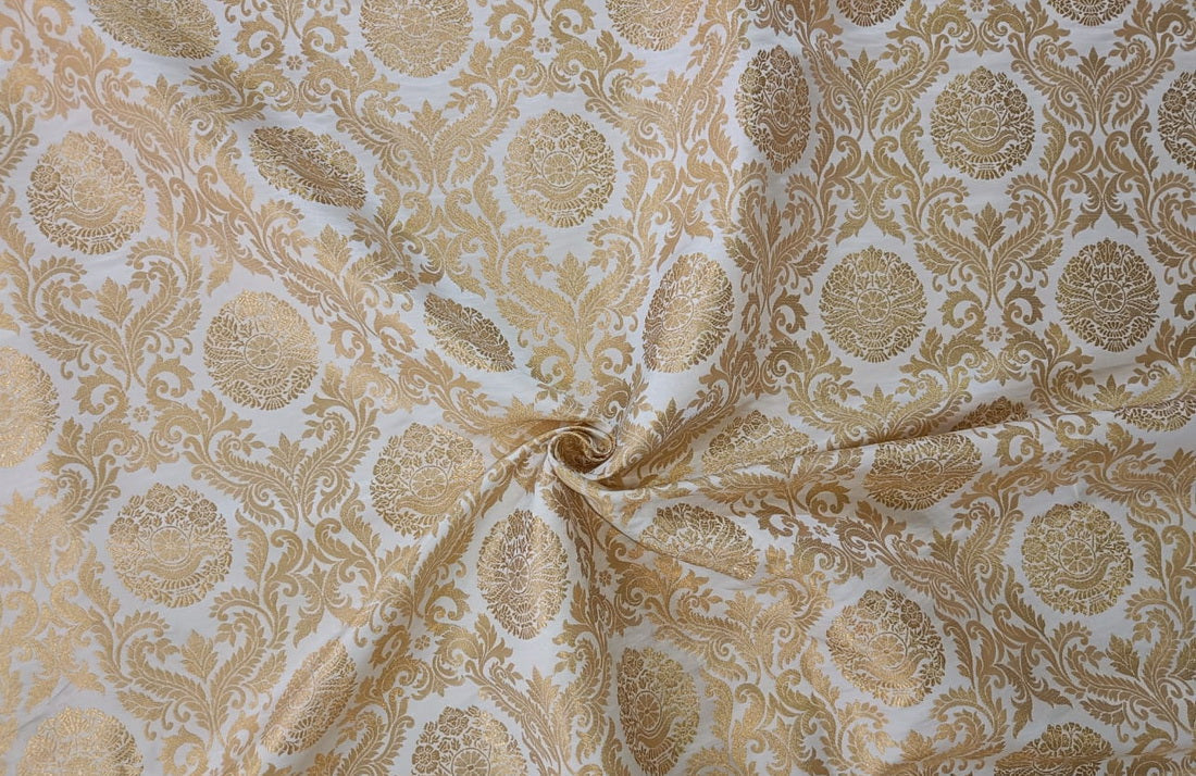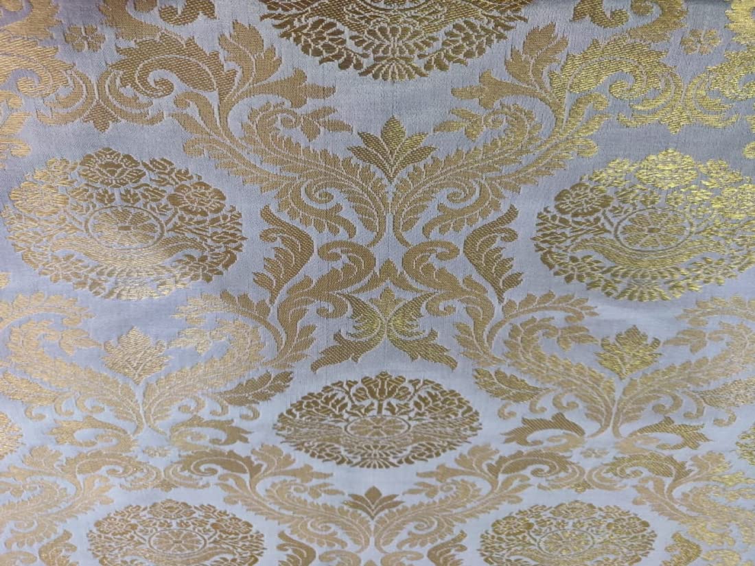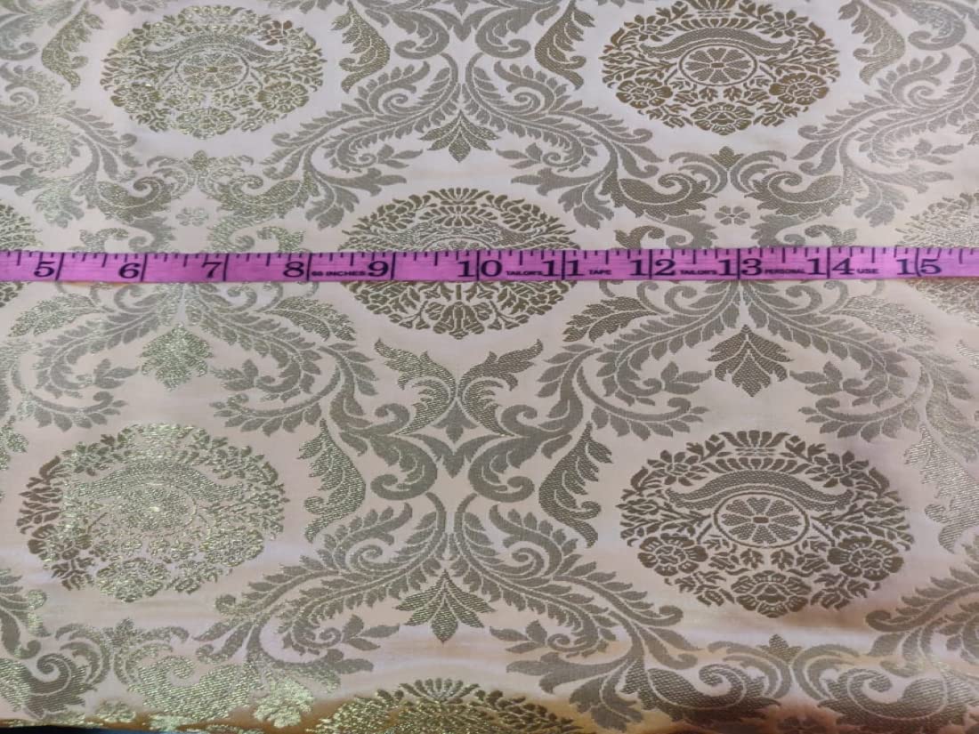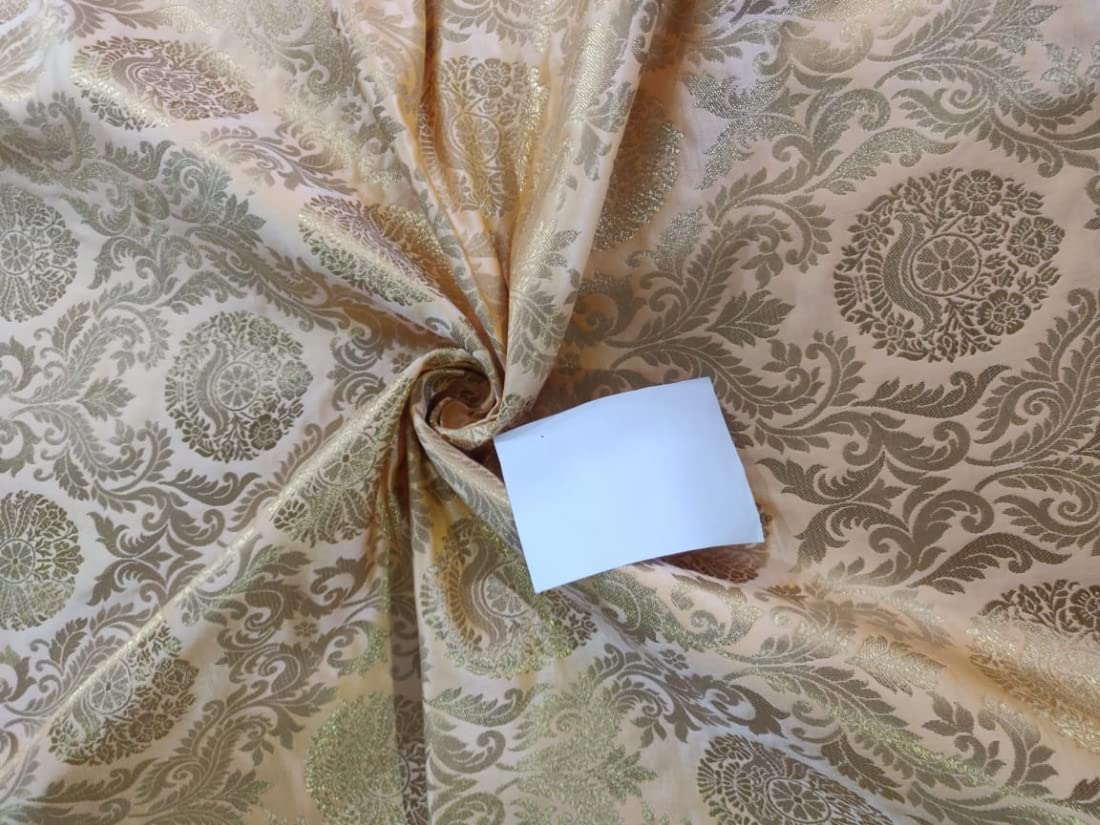 Silk Brocade fabric 44" wide with metallic gold jacquard  available in 4 colors ivory, lilac, peach and BRO805