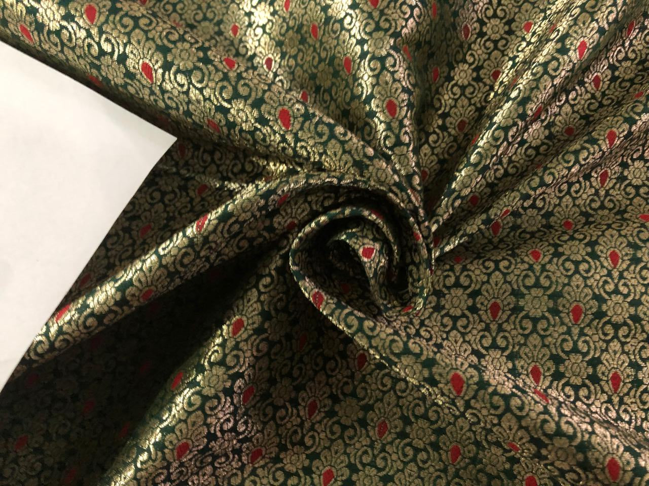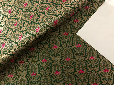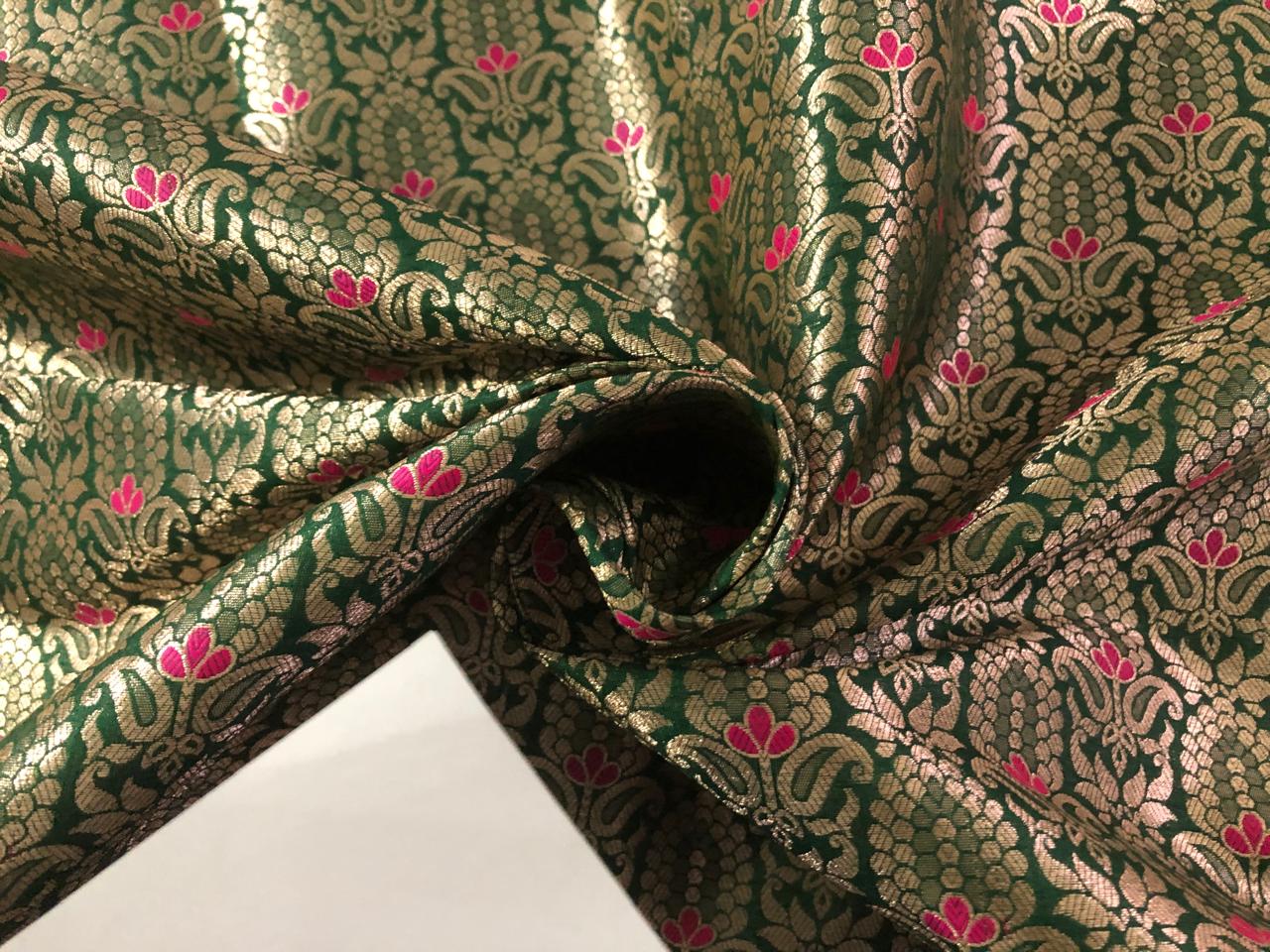 Silk Brocade fabric with metallic gold jacquard 44" wide GREEN AND PINK BRO945[4]