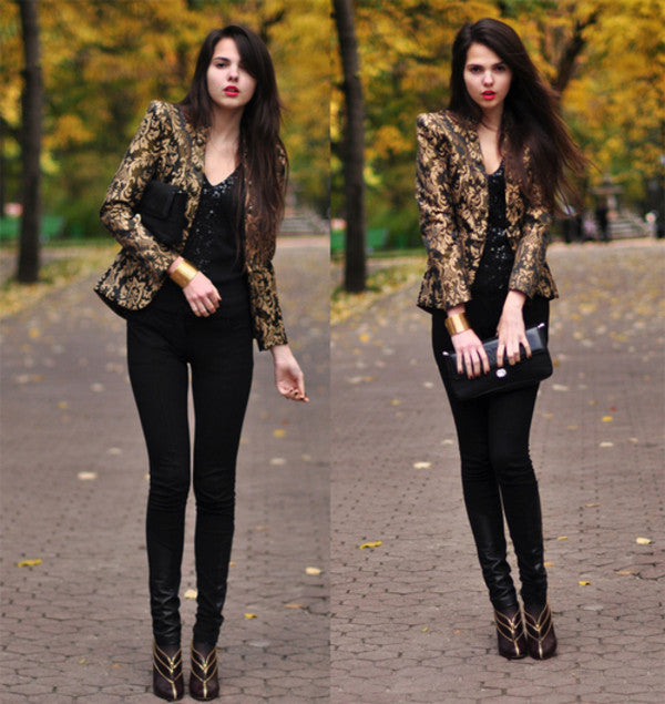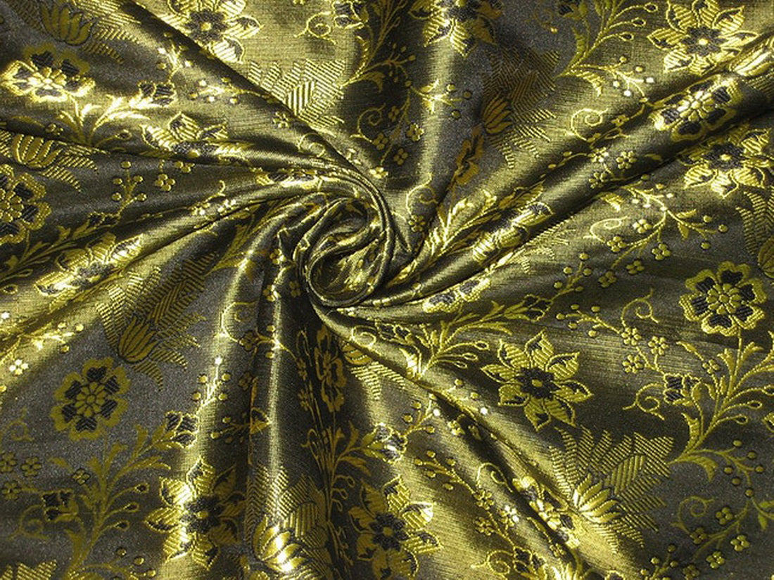 Silk Brocade Fabric Yelowish Gold & Black BRO20[5]