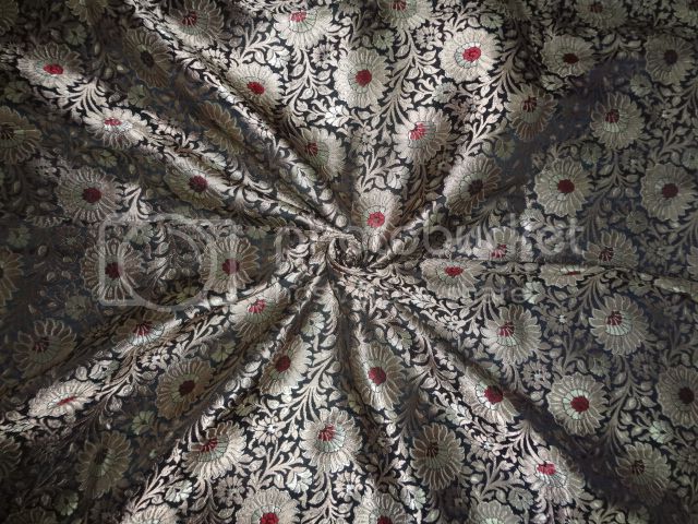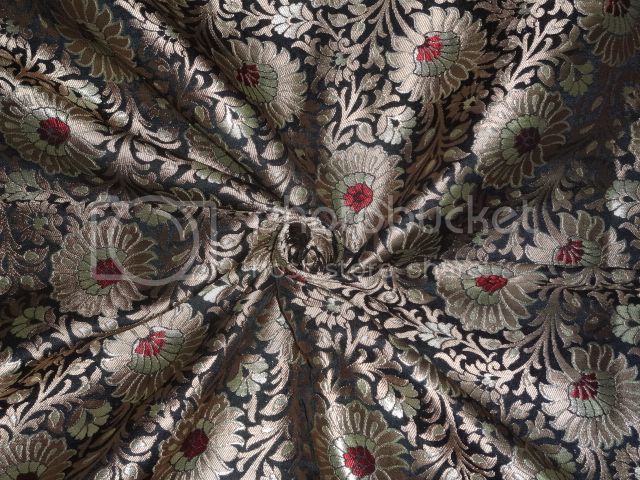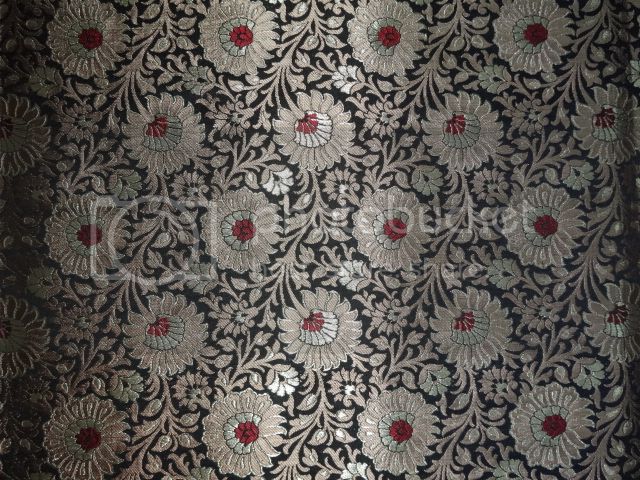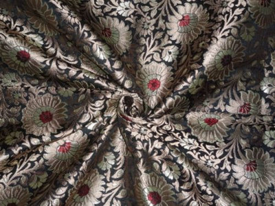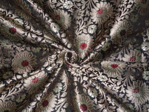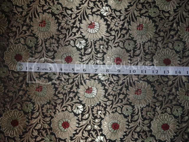 silk brocade Heavy FABRIC Black,Red,Gold & Metallic Gold 44"