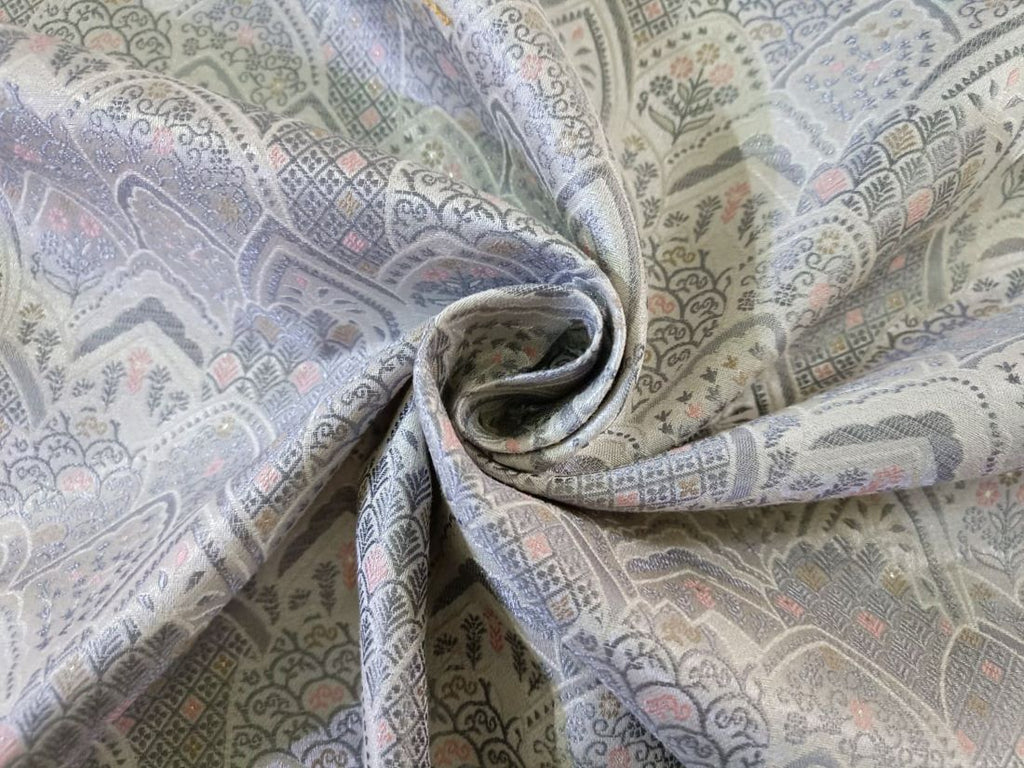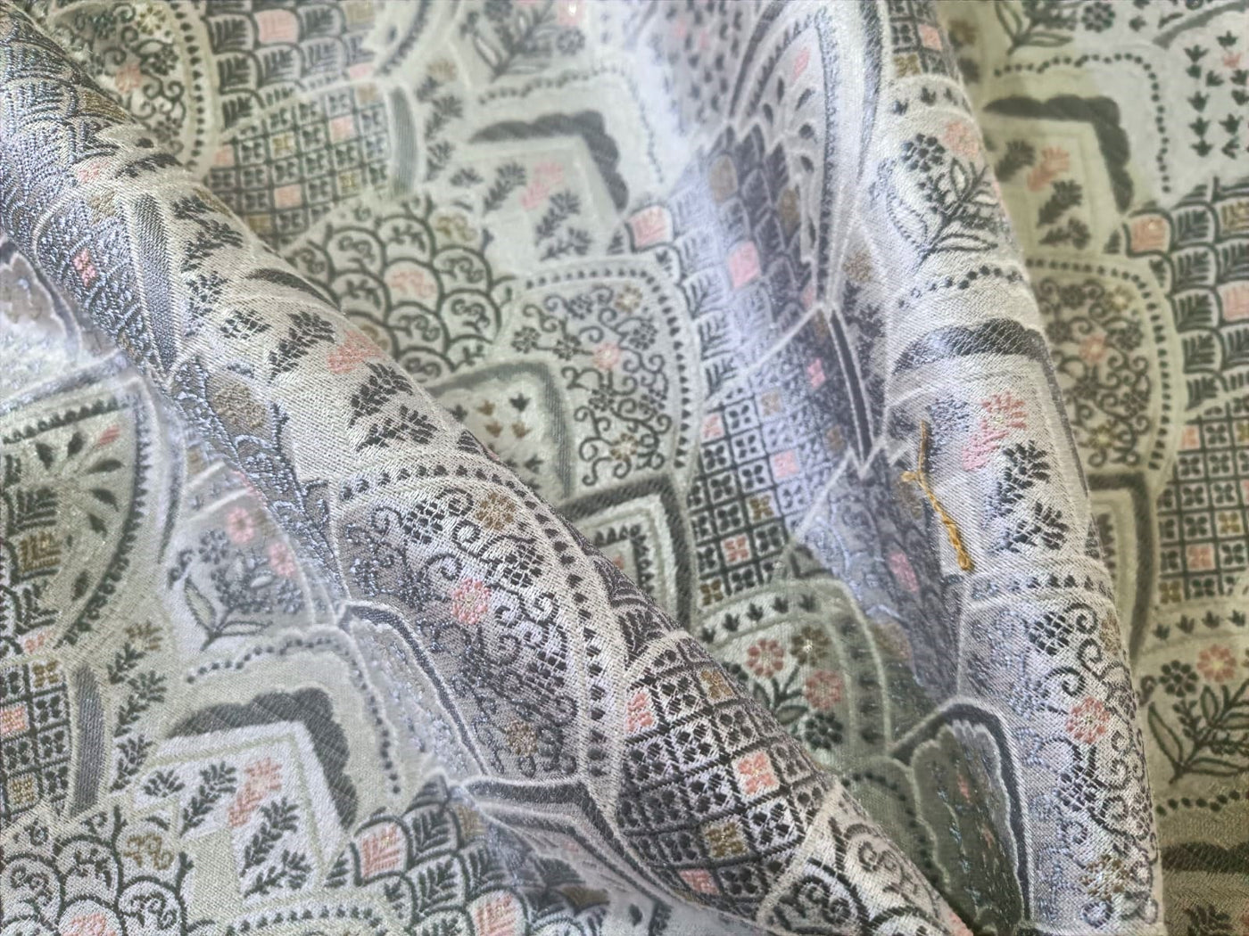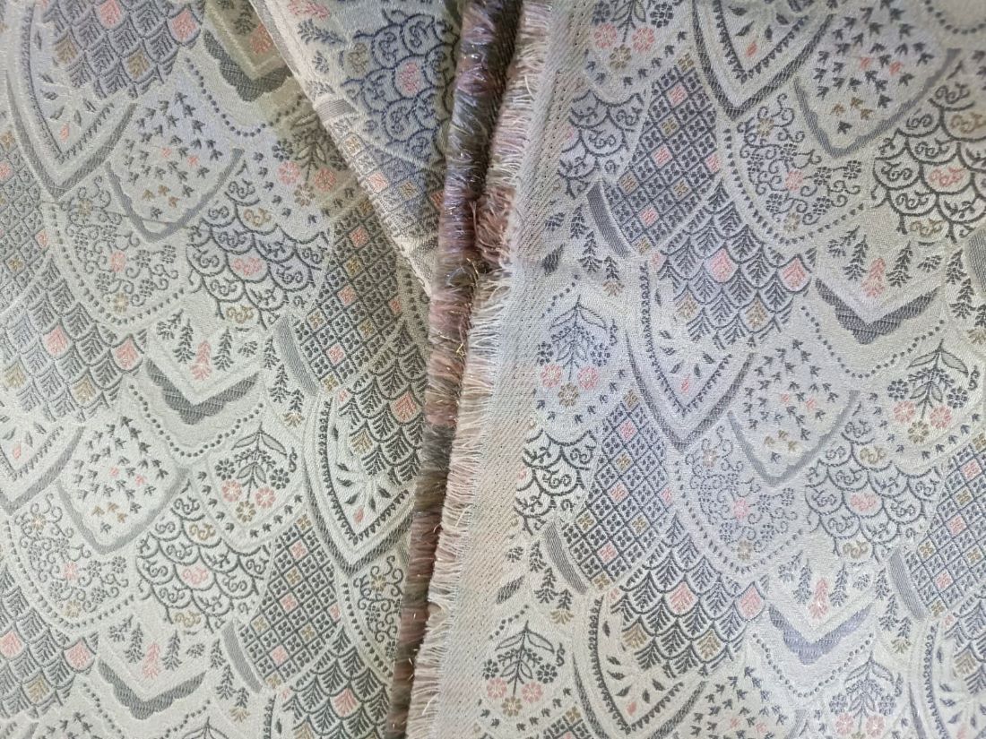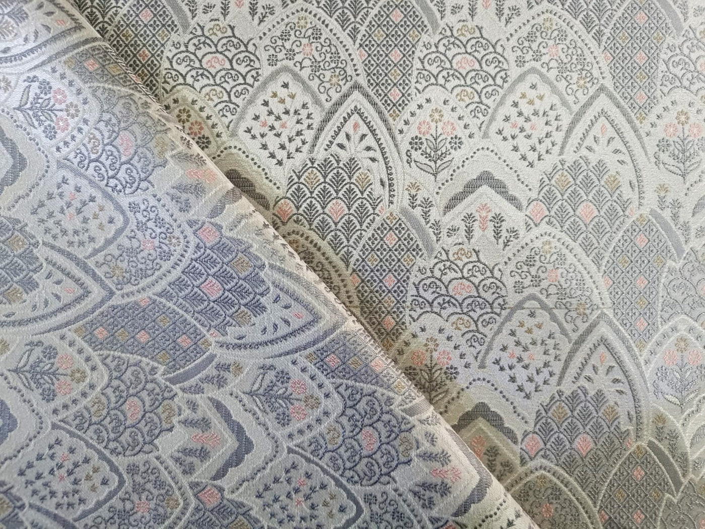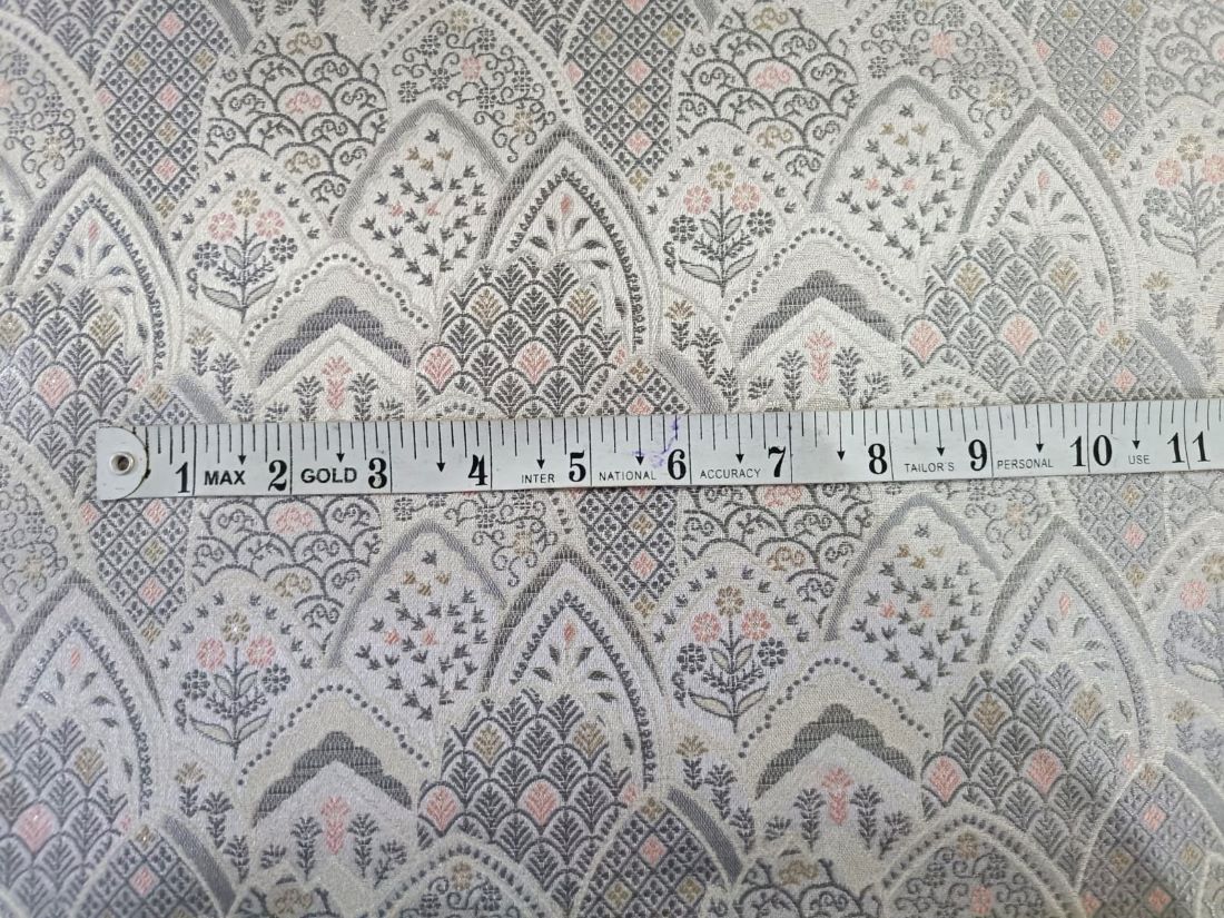 Silk Brocade jacquard fabric Silver Grey And Pink color 58" wide BRO876[1]