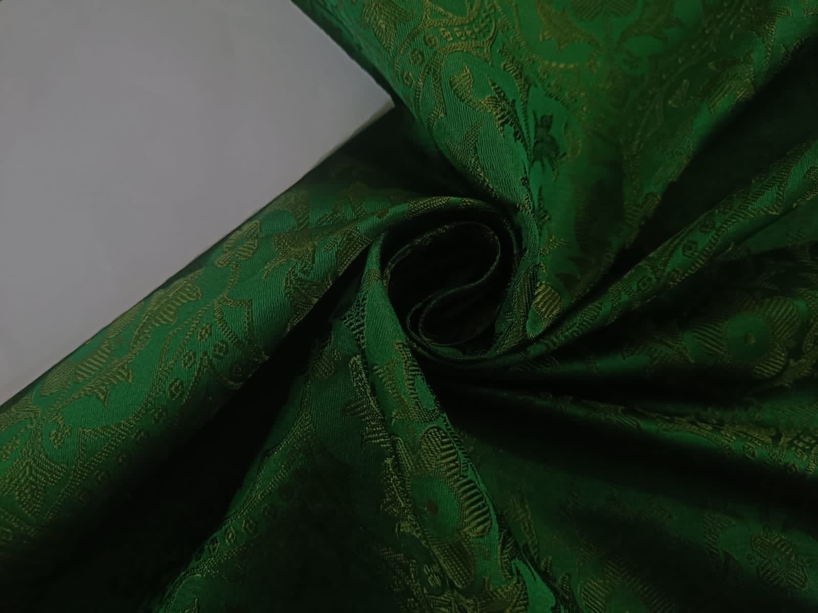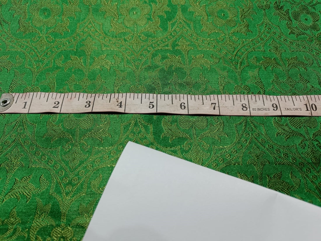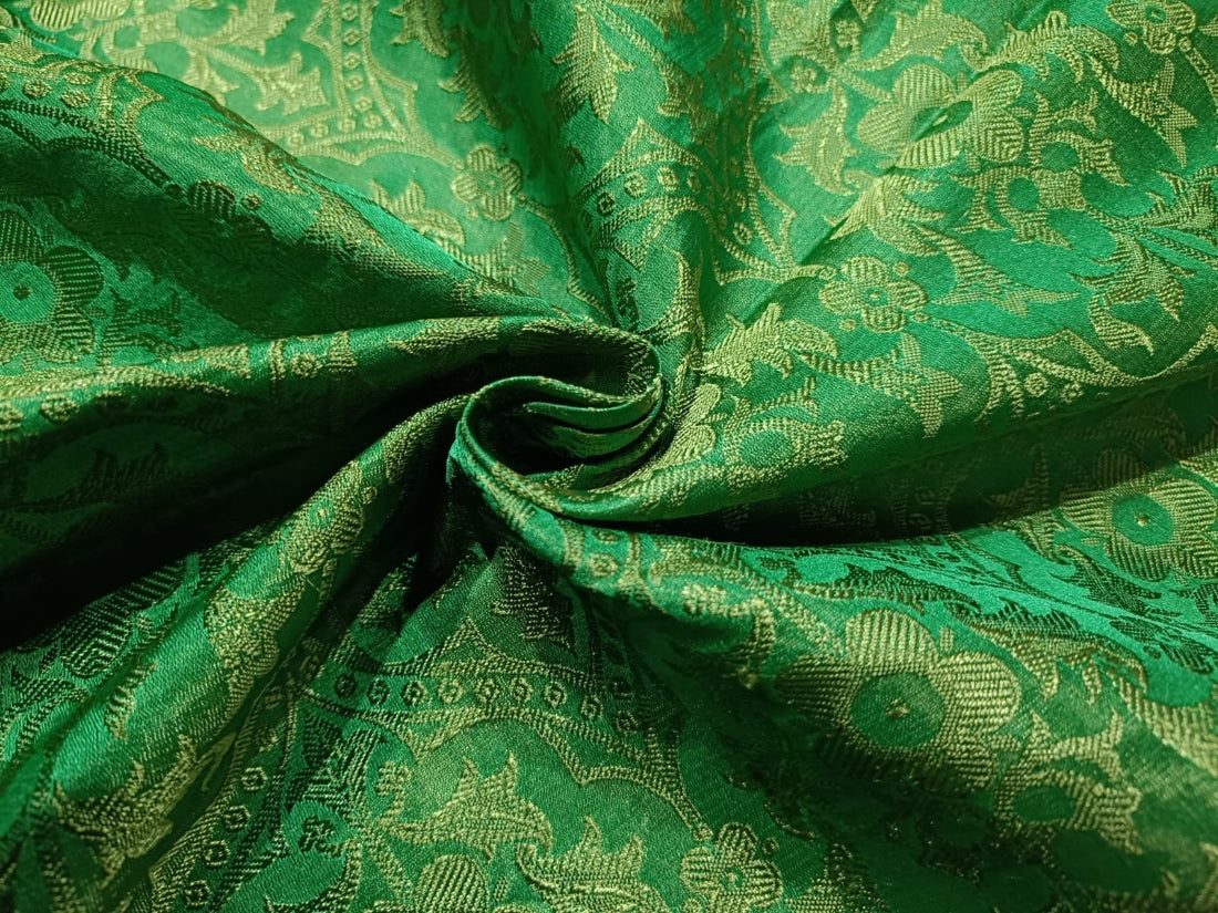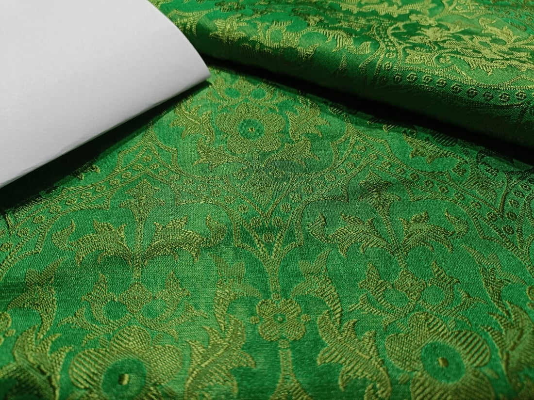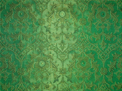 SILK BROCADE JACQUARD FABRIC LIGHT GREEN X GREEN COLOR 44" WIDE BRO46[7]