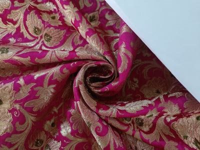Silk Brocade King Khab [kings dream] fabric hot pink, nude pink, green and metallic gold color 36" wide BRO868[2]