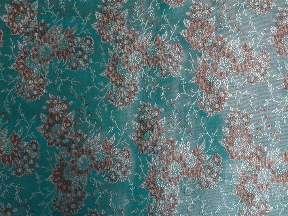 SILK BROCADE PURPLE KINGFISHER GREEN, MUSTARD & GOLD COLOR 44"INCH