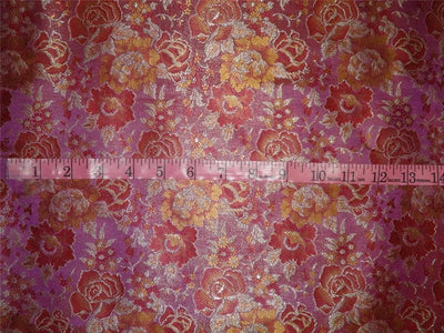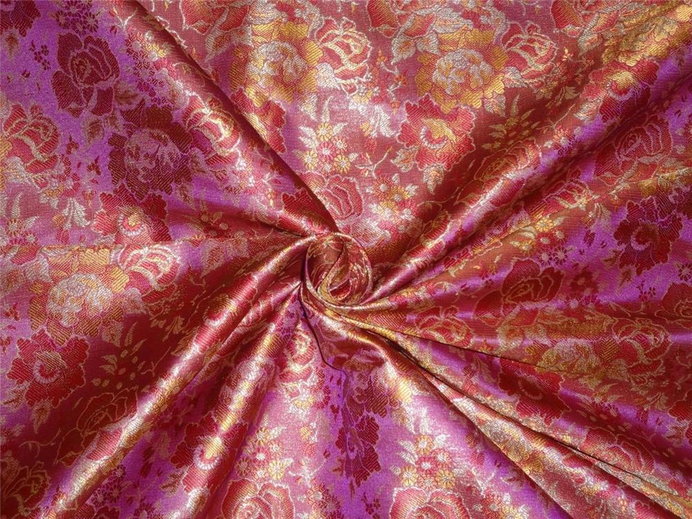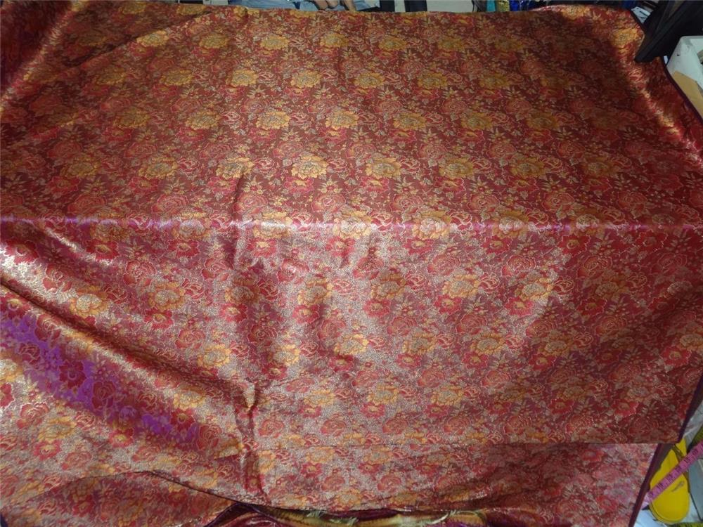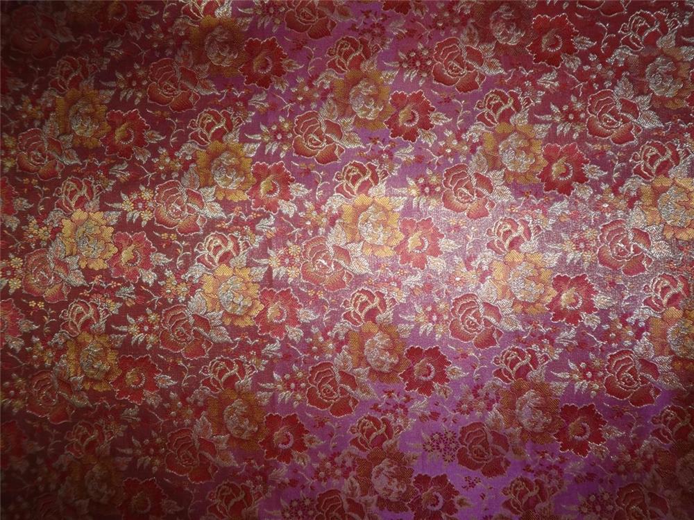 SILK BROCADE PURPLE RED MUSTARD & GOLD COLOR 44"INCH