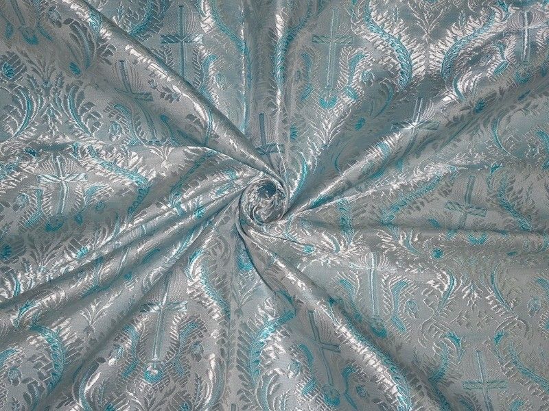 Silk Brocade Vestment Fabric Sky Blue & Ivory color 44"BRO352[1]