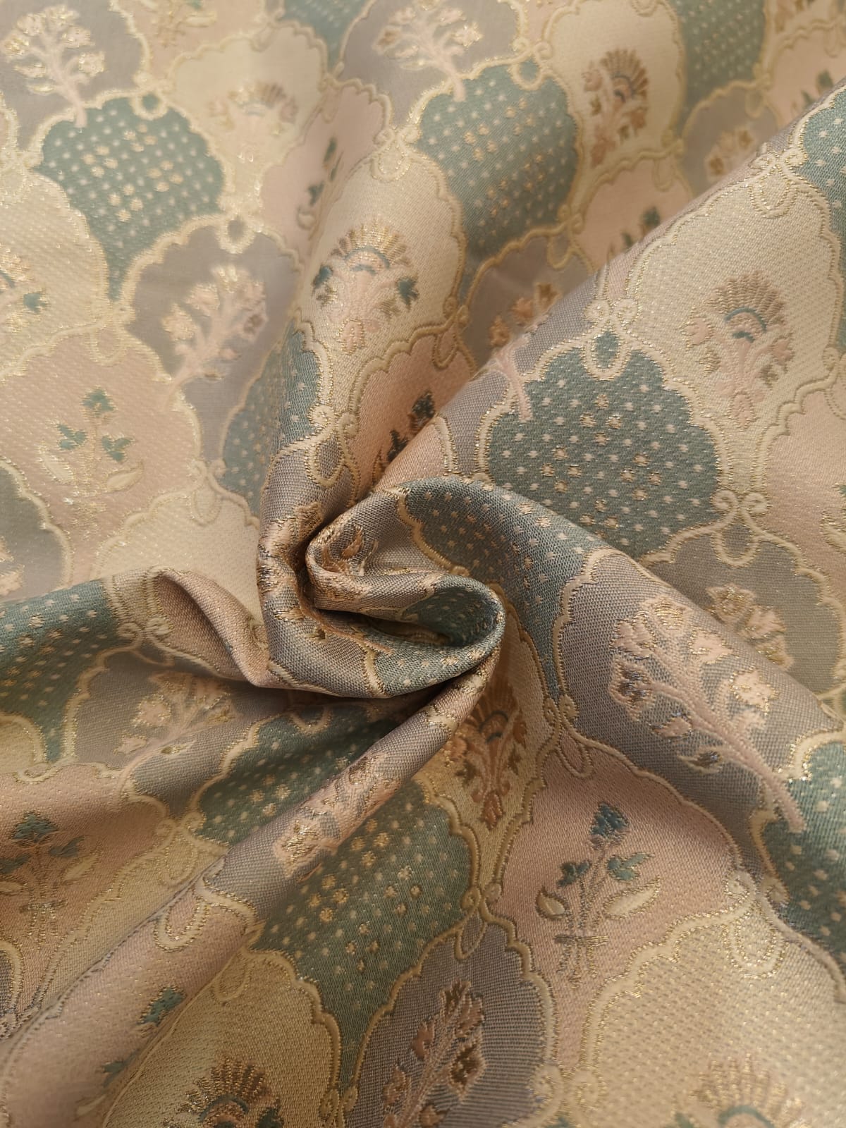 | Usage | Gowns ,Liturgical Brocades, Damasks, Tapestry, and Brocatelle Fabrics used for Historical Period and Renaissance Costumes. Church Vestments and priest robes. |