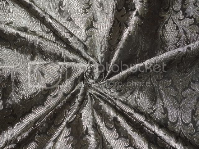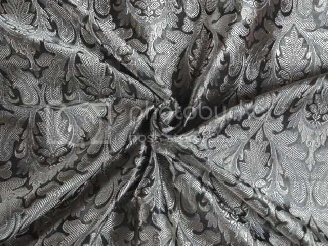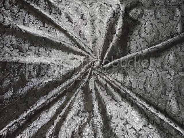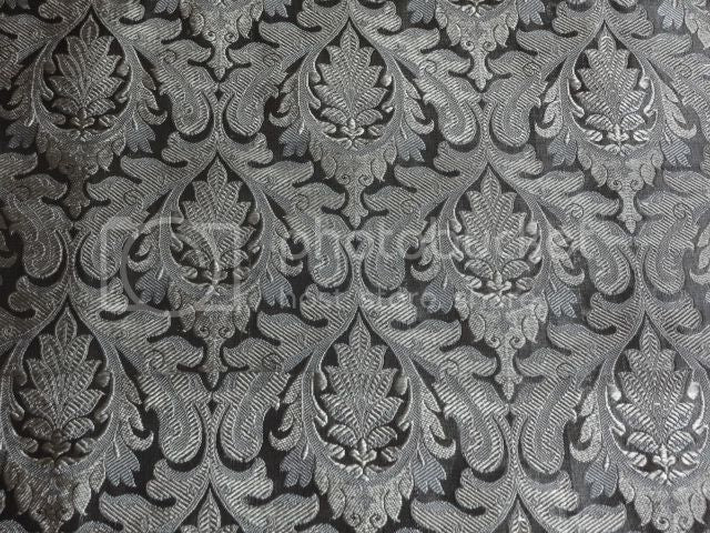 Silk Brocade~Width 44"~Dark Steel Grey & Silver colour