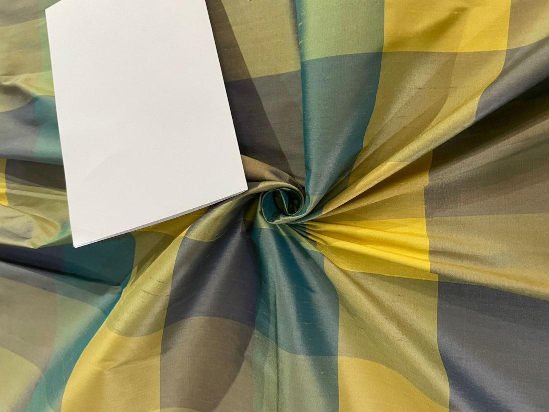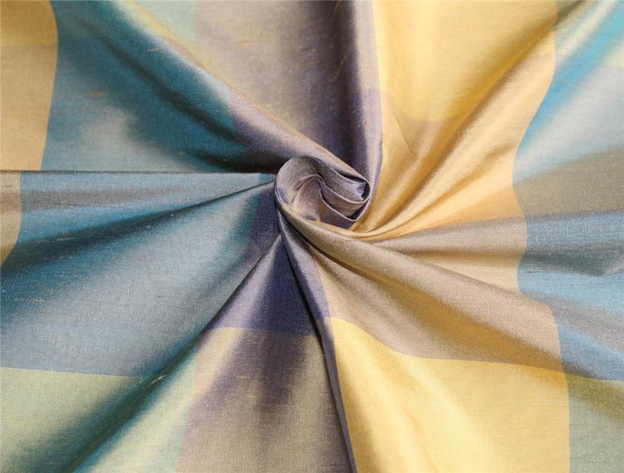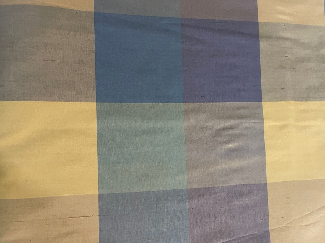 100% Silk Dupioni Fabric Plaids yellow x blue x cream color 54" wide DUP