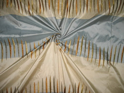 SILK TAFFETA FABRIC Blue & Cream stripes with jacquard