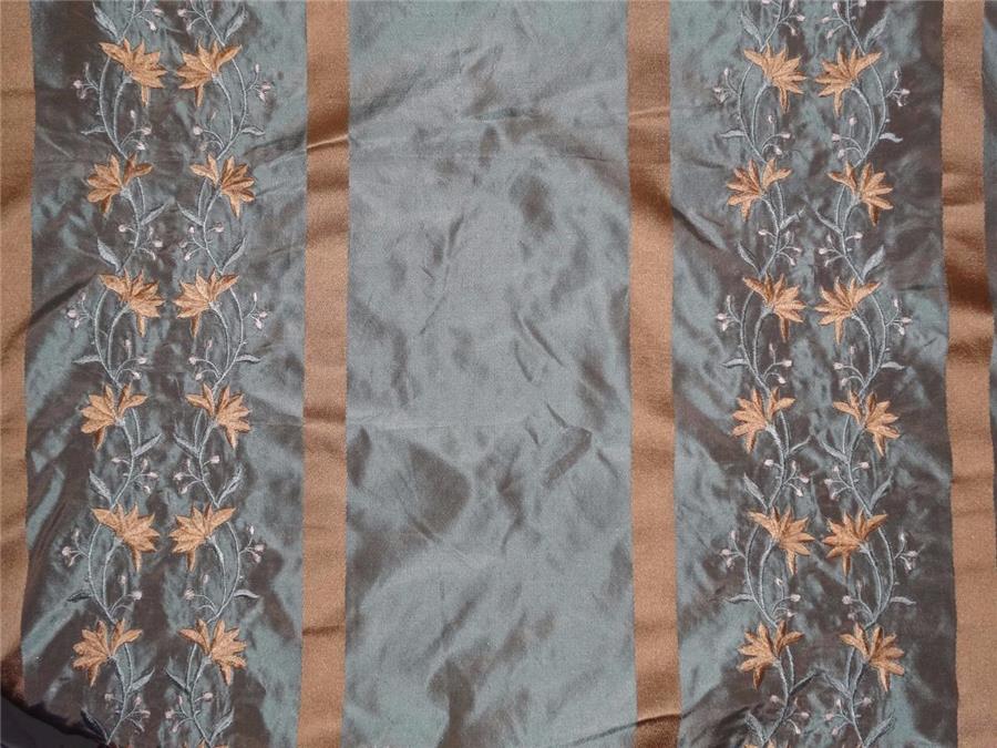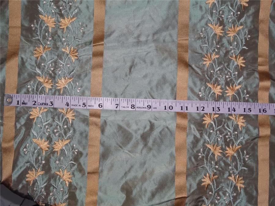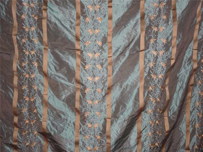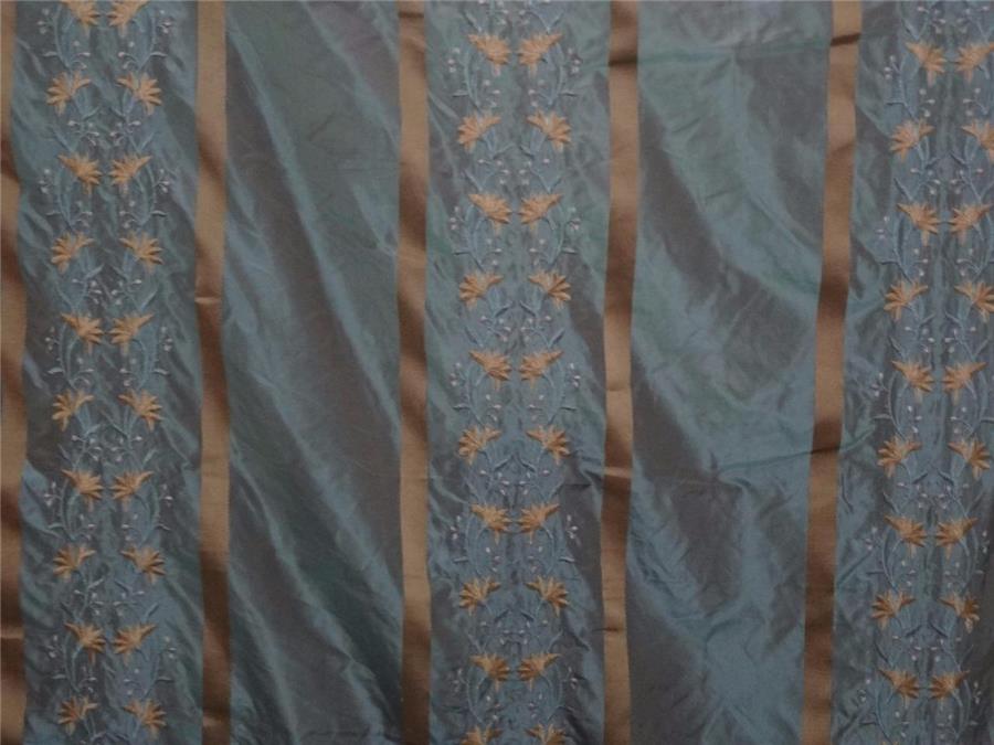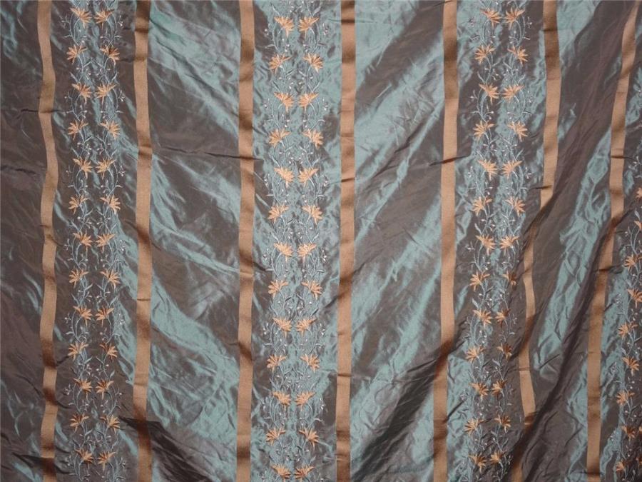 silk taffeta fabric blue x beige with gold satin stripe & embroidery 54"TAFE14