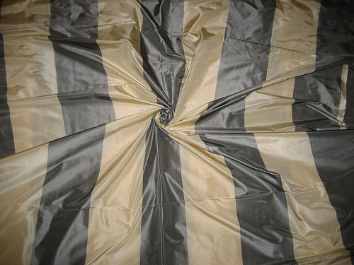 Silk Taffeta Fabric Dark Cream & Steel Grey Stripes 54" wide
