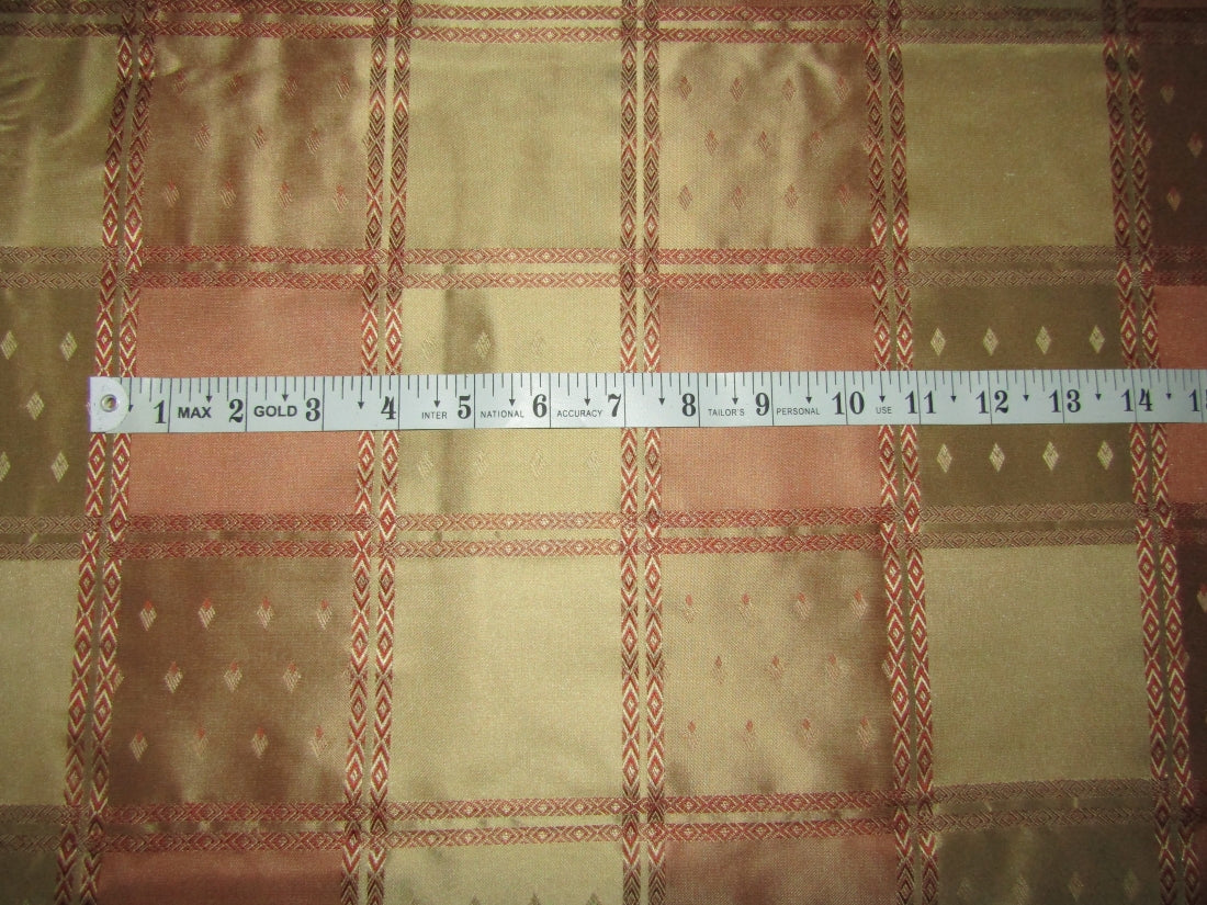 SILK TAFFETA Plaids FABRIC SALMON Pink & Light Gold jacquard 54" wide TAFCJ9