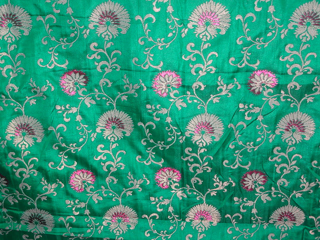 Silk x viscose & metallic fabric brocade/jacquard Green,Pink & Gold 54"