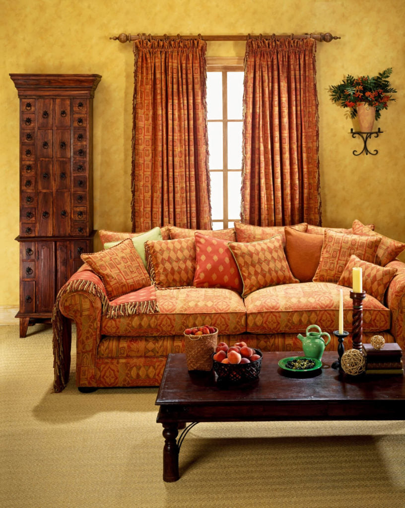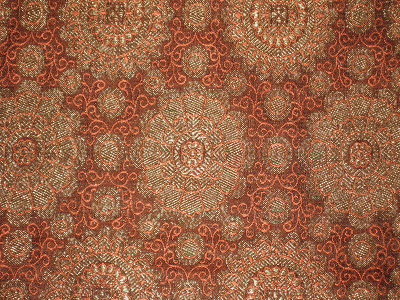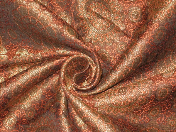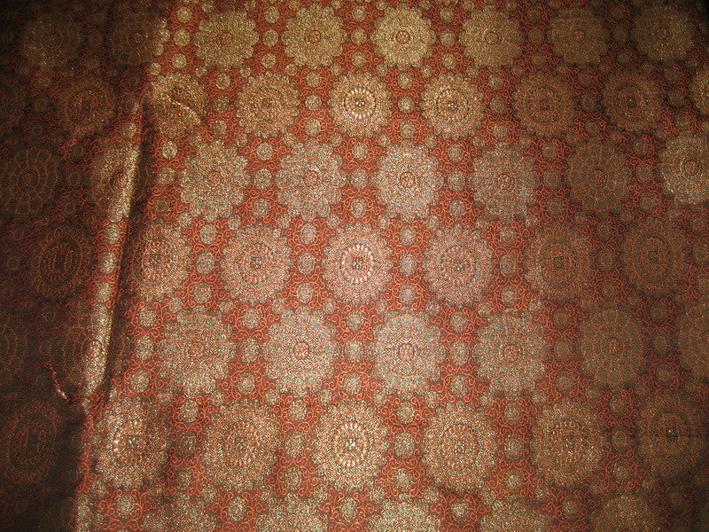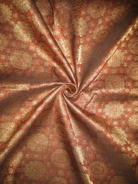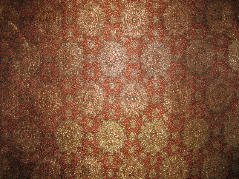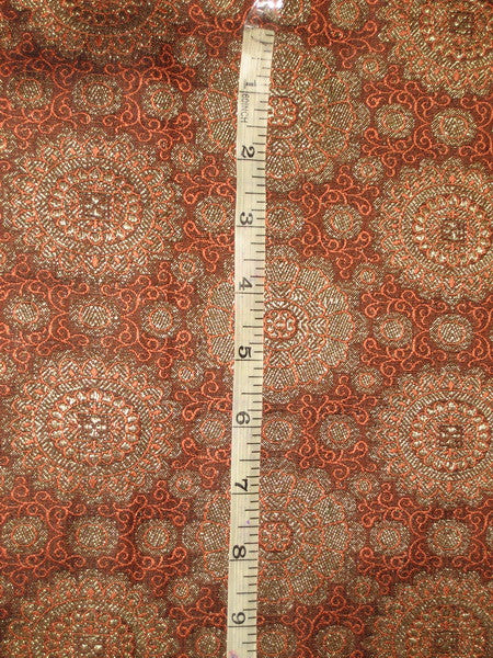 Spun Silk Brocade fabric Orange,Black & Metallic Gold 44"