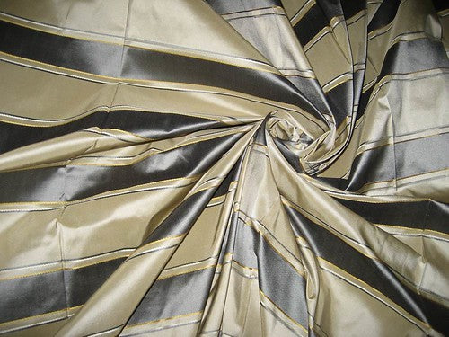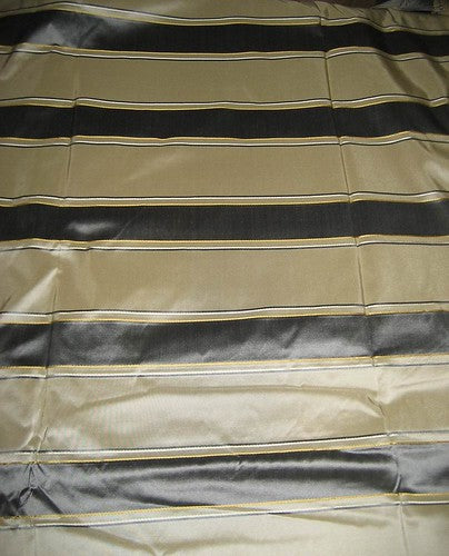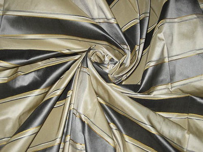 Steel Grey, Yellow, Sand Gold & White color Satin Stripe Silk Taffeta Width 54" wide