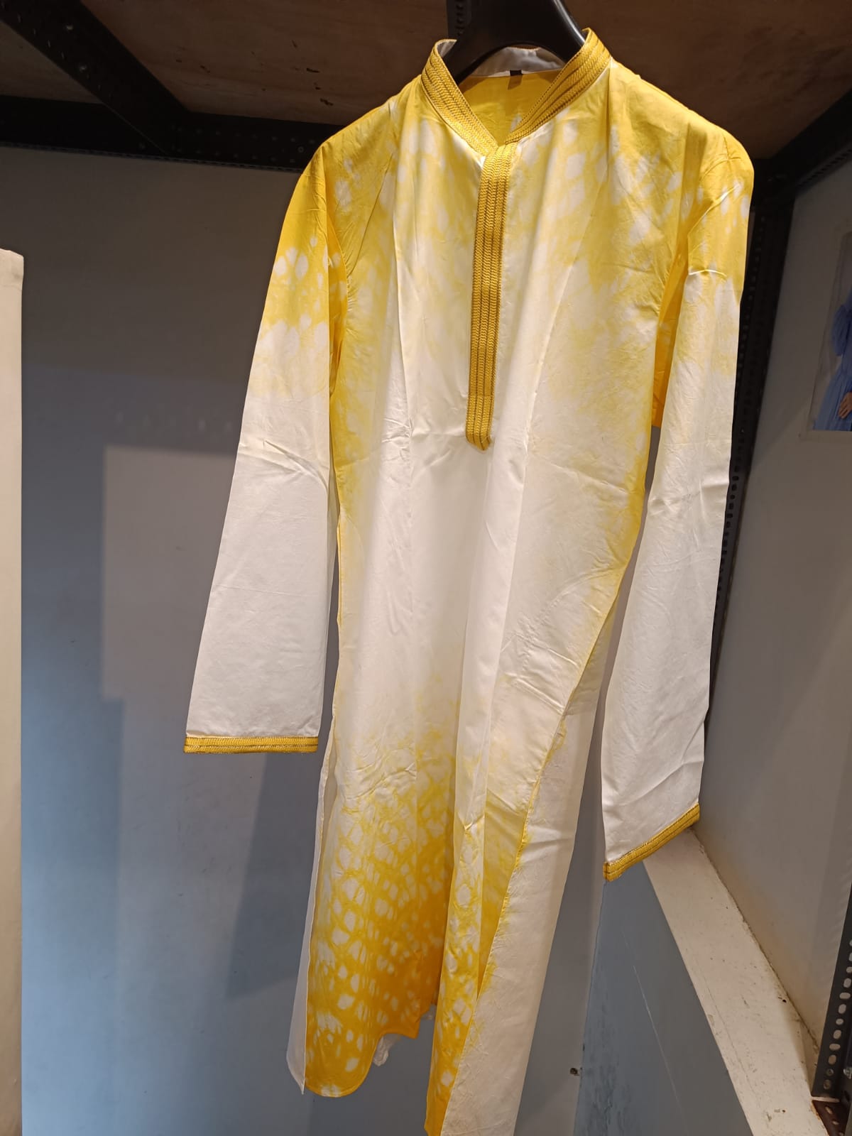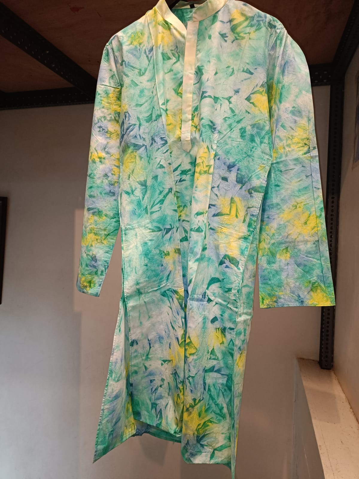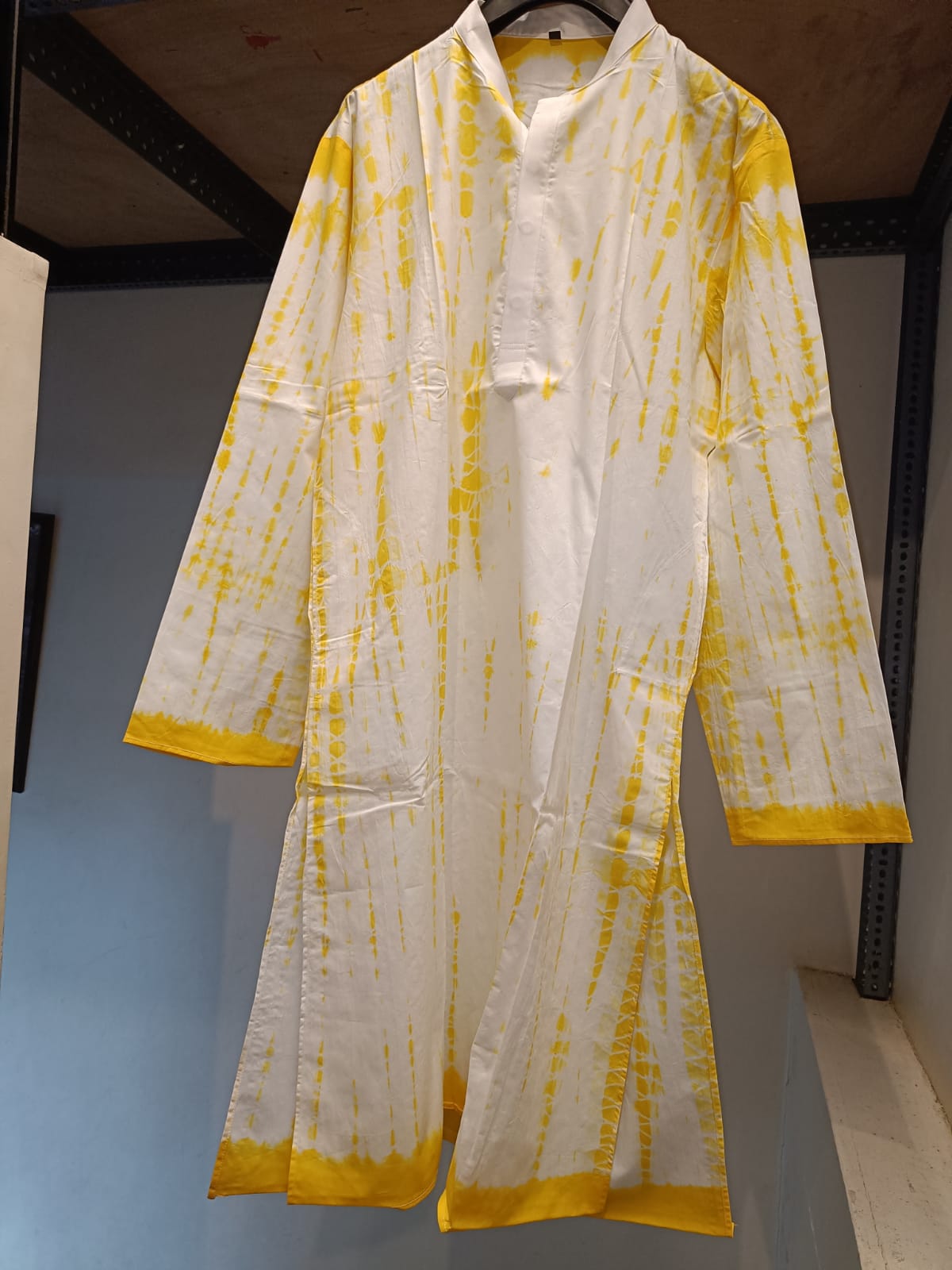 Transform your wardrobe with this stunning hand-painted tie-and-dye stitched men's kurta. Crafted with 100% cotton, this kurta is available in 7 rich, vibrant colors so you can express your individual style. Make the transition from casual to formal in style.