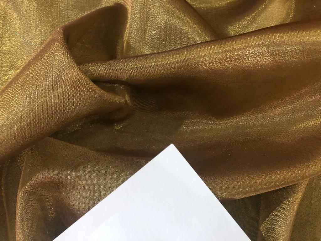 Tissue fabric 44" wide available in 14 colors copper, bright gold ,subtle gold ,neon pink ,neon green ,neon blue ,dark gold, blue x pink , white gold, blue with a hint of pink, pinkish mauve, gold x black ,copper x gold ,SILVER