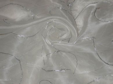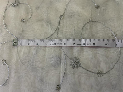 White color 100% silk organza fabric 44" wide available in 2 designs [SILVER ZARI embroidery and gold pearl embro0idery]